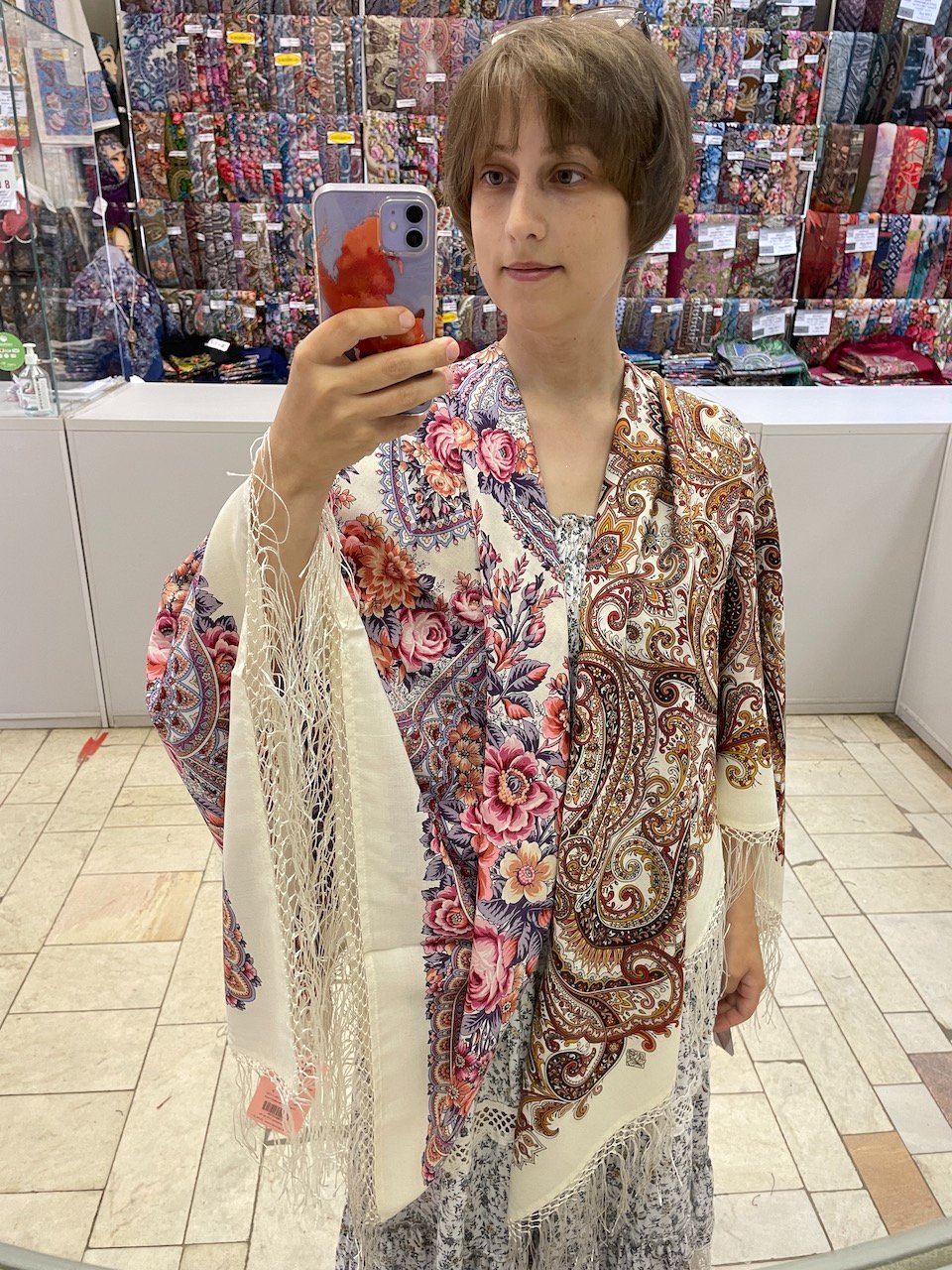 Лучше бы примерить. Шаль очень харАктерная, с норовом.