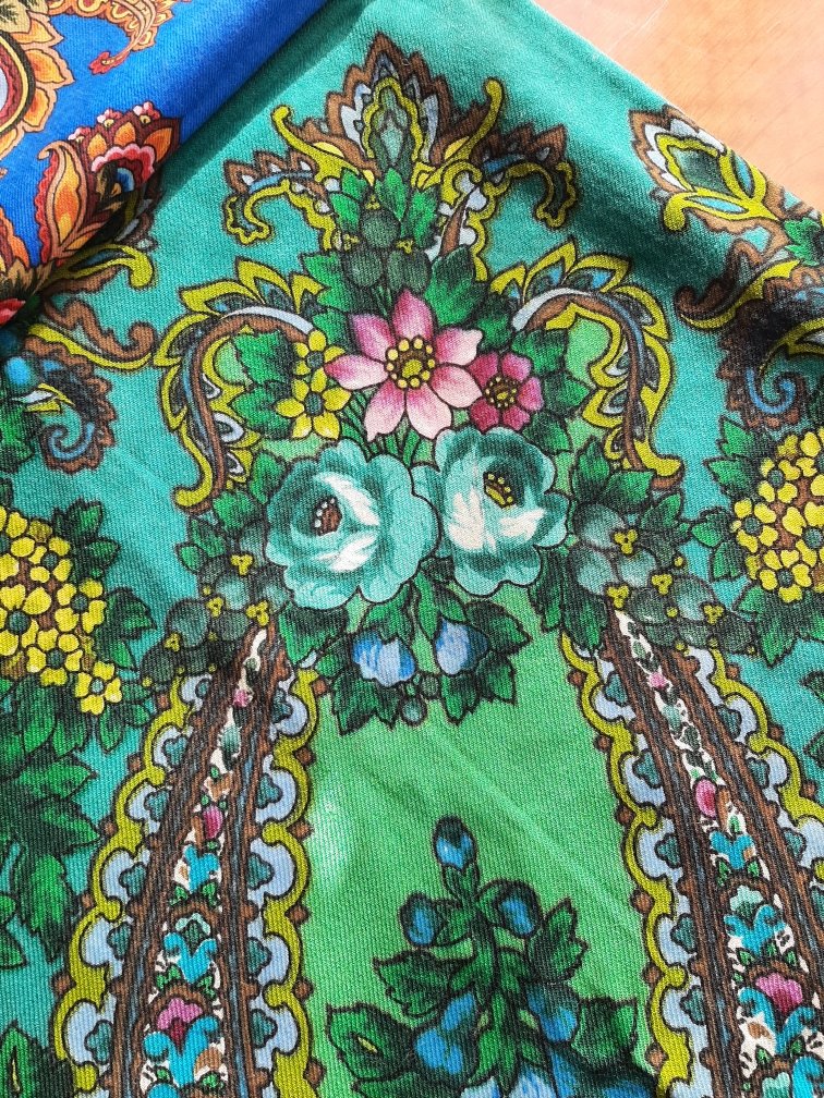 Моя старая шаль стиралась, и, видимо, неоднократно. Уже даже не помню, при каких обстоятельствах я ее купила, но после того, как она попала ко мне, шаль никак не изменилась. Я ее надевала только один раз, дома, для фотографии. Цвет местами кажется немного поплывшим. Но и сам рисунок пропечатан не очень четко - особенно в мелочах. Это я к тому, что качество печати на новой шали намного лучше! Не отказалась бы от перевыпуска "Вдохновения" -20 в современном качестве (но не за 10 тыс. :lol: ).