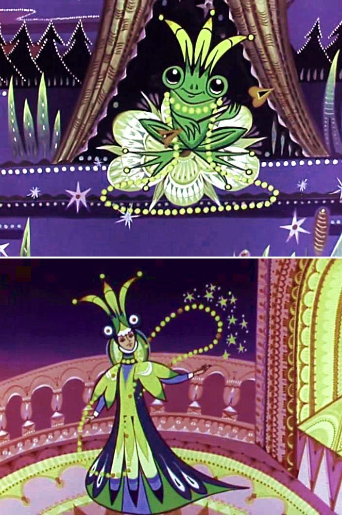 Посмотрите, на каком похожем цветочке сидит лягушка (из мультфильма), и какая в руках стрела с наконечником-сердечком!