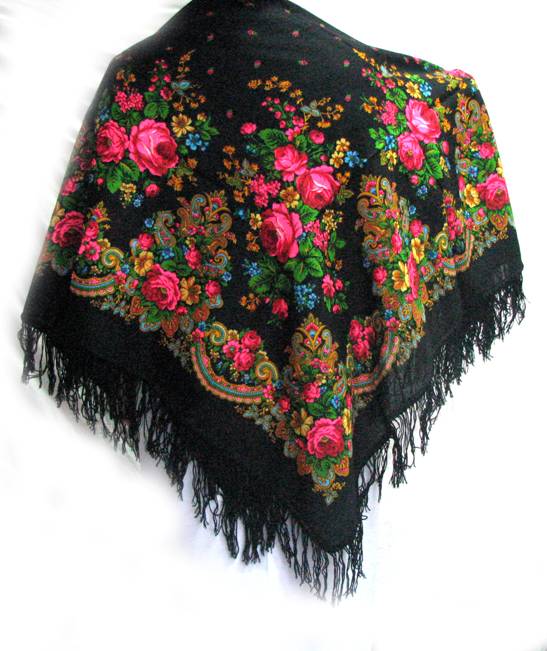 Вот на этом платке розы фуксиевого цвета. Значит, традиционный. А вот на Святочном, мне кажется, не фуксиевые. Хотя рисунок мне нравится.