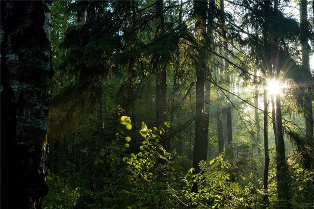 Далеко-далеко раскинулось царство лесное, таежное, нет ни конца ему, ни края. Куда ни глянь - все укрыто зеленым покрывалом. Дремучий лес, таинственный, в чащах непролазных сучья кустарников сплелись стеной. Высокие стройные сосны взметнулись вверх, разлапистые ели распушили свои ветки. Стоят, друг перед другом прихорашиваются: у кого иголочки длиннее, у кого шишки красивее. Лучик солнца пробился сквозь заросли и заиграл на капельках росы, позолотил кружева, сплетенные паучками, поиграл в прятки с шелковистой травой. Налетел ветерок - озорник и разворошил прически у деревьев, послушал, как ручеек играет на своей свирели. Ау! Ау!