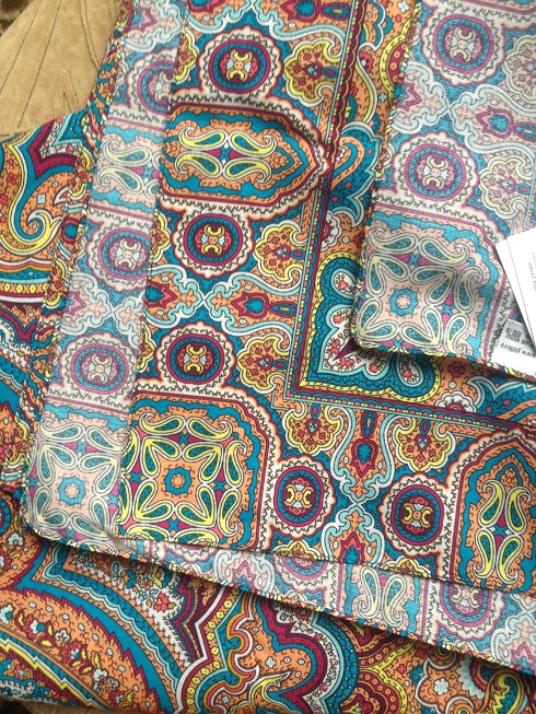 Здесь - снято " на просвет" - чтобы представить, какова толщина материала. Она точно такая, как на платках 75 на 75 из хлопковой саржи - материал тот же.