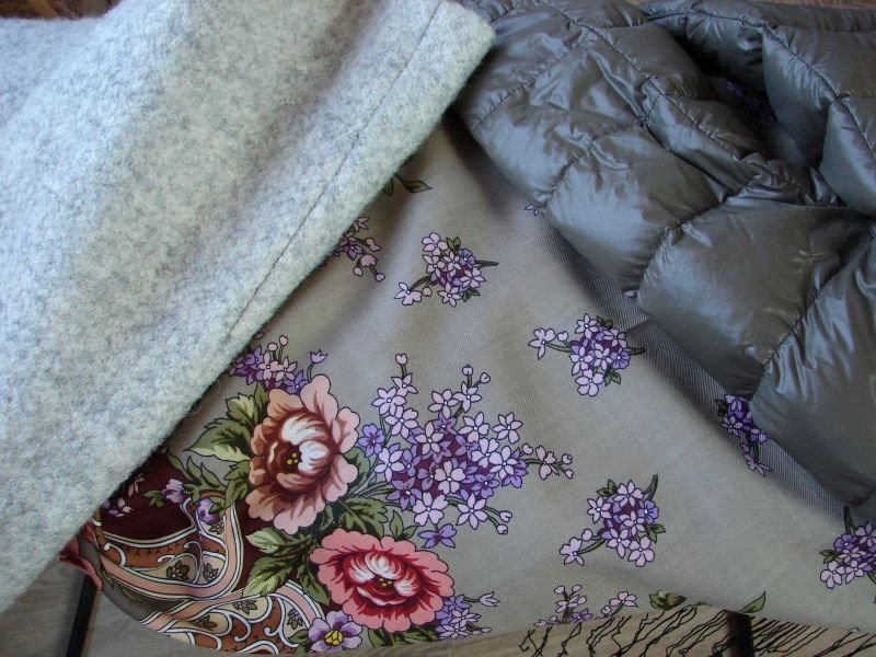 Вот ещё серое пальто слева, оливка справа. Очень хорошо видно, что серединка, как куртка, только осветленная.