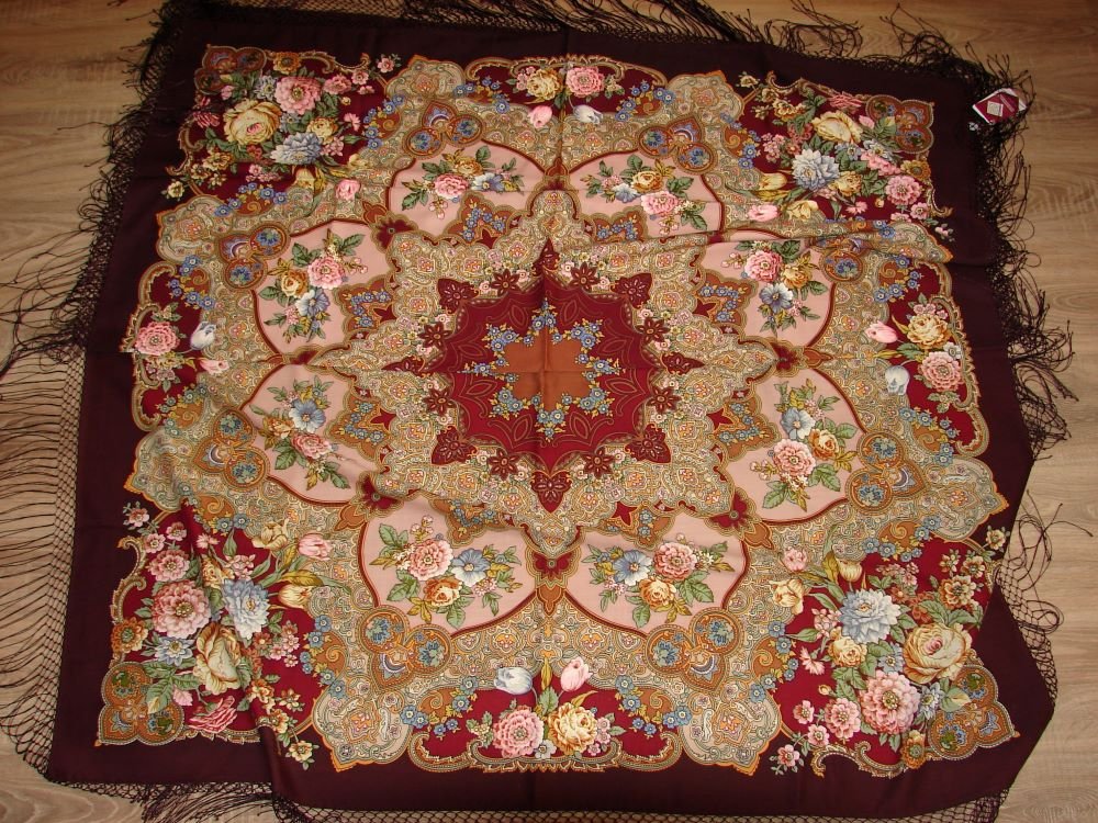 Решила сравнить "Вечерний сад" Т.Сухаревской и "Сны белых цветов" В.Фадеевой. Платки 15-го колорита. В архиве очень мало фотографий этих платков.Снимки сделаны при дневном освещении. При искусственном освещении насыщенный ягодный цвет становится ближе к фиолетовому. "Вечерний сад" очень люблю и так часто носила, что когда платок сняли с производства поспешила купить дубль.На мой взгляд, по цветовому решению у этого платка нет аналогов.