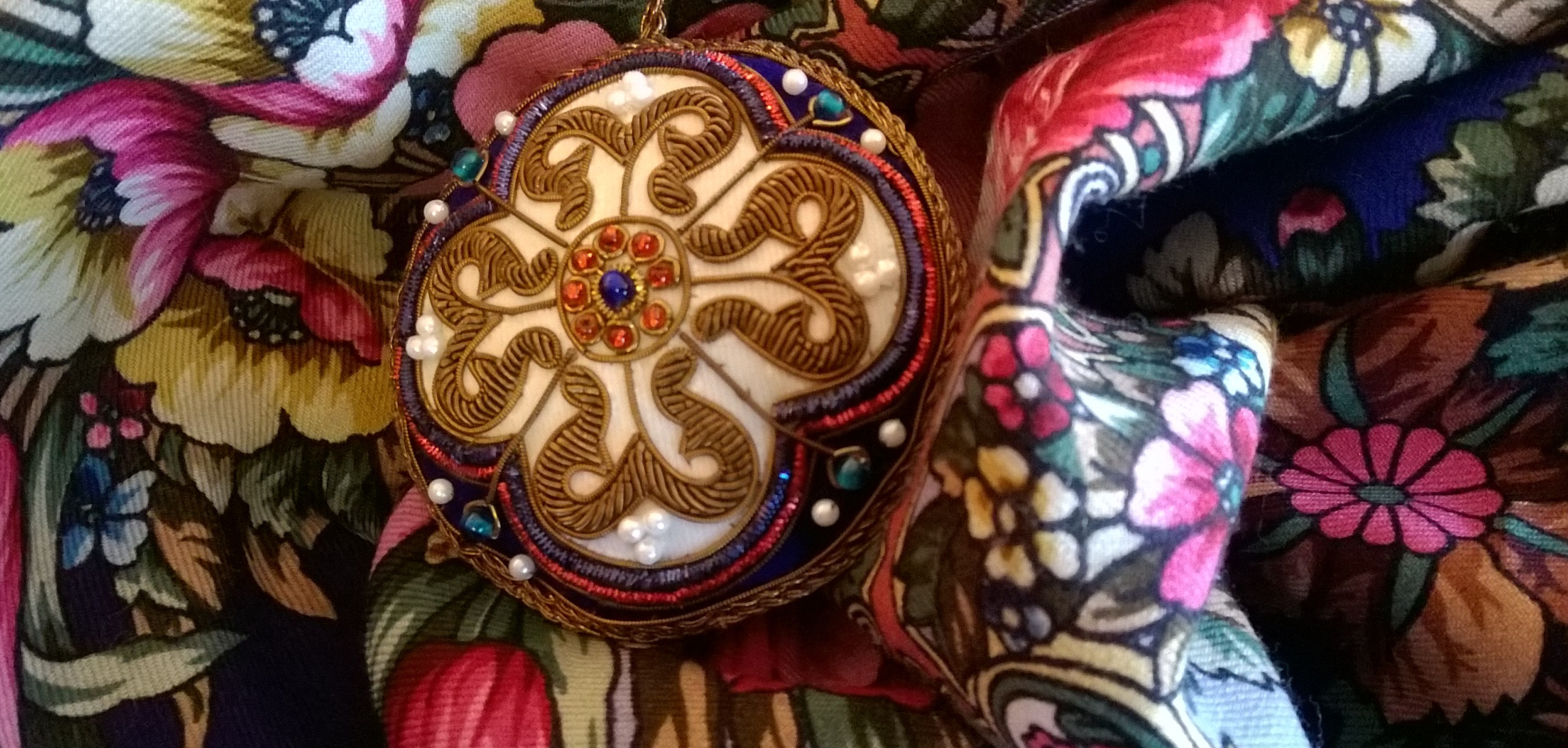 Кстати, вечером, когда я его вешала для просушки «во весь рост» на стену, он был таким украшением интерьера, не могла налюбоваться! Помимо необычного притягательного колорита, в Откровении-16 очень красивые цветы и листья, достаточно яркие, сочные и в то же время естественные, без «вырвиглазности».