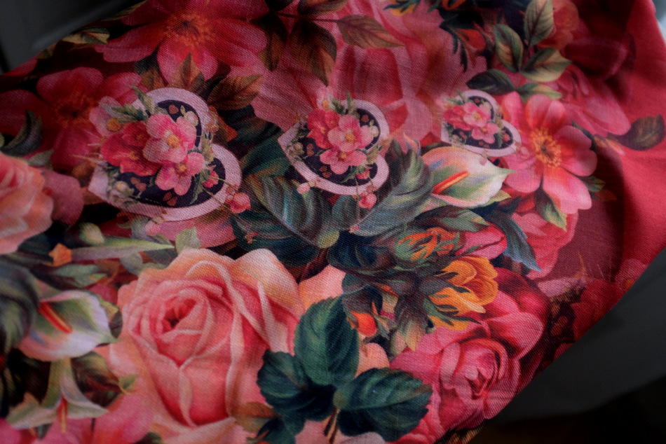 А это тот платочек, который был из самой первой партии. Потом, если помните, они изчезли из продажи и появились на другой ткани. Я видела в магазине этот же платок уже на новой ткани - он стал темнее, насыщеннее. Мой совсем бледненький, "застиранный", но мне в этом рисунке это нравится.
