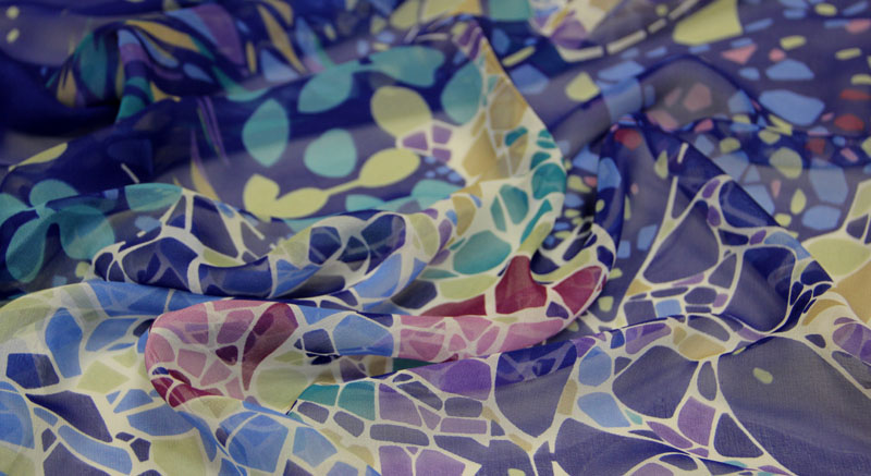Была в Ветошном - сфотографировала шифоновый платочек "Парк Гуэль" - ох, хорош! Такие симпатичные натуральные синие и голубые цвета! И остальные тоже в гамму.