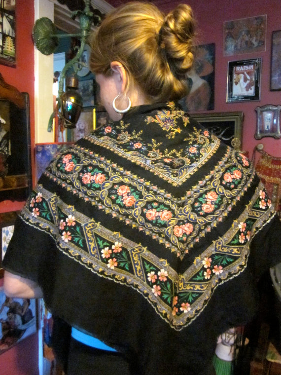 №15- 150х150, шаль 80-х годов с цв. мотивом на синем грунте, черным средником и каймойSimplyRed писал(а):А вот этот?