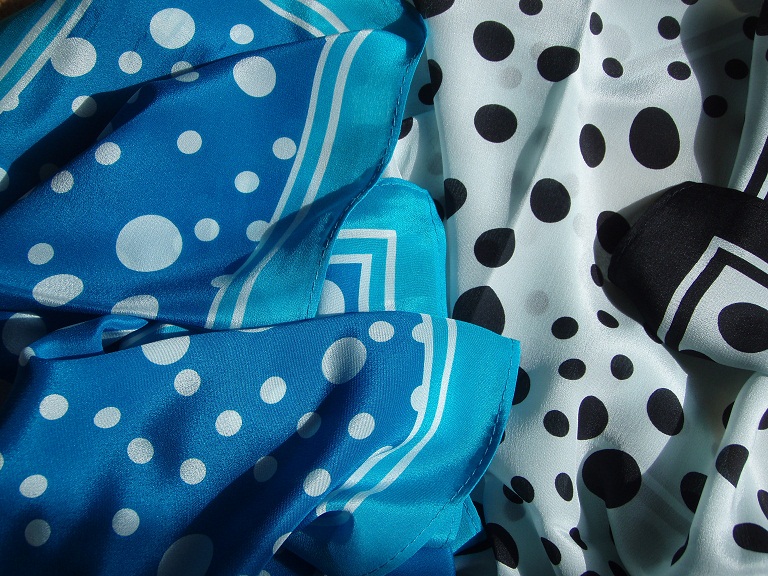 Чёрно-белая с голубым отливом Полька - не пойдёть... А вот Пёстрая лента на голубом...