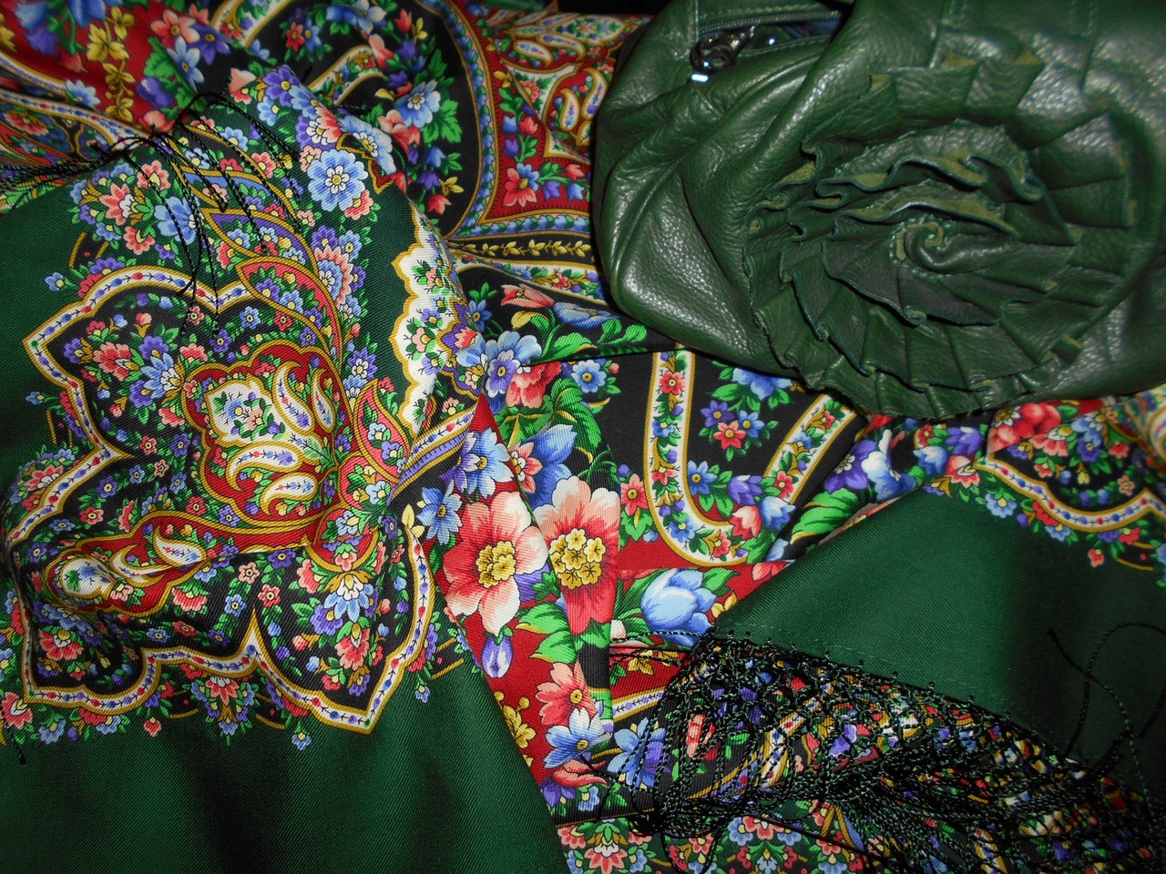 Как хороша будет в комплекте с однотонными, изумрудно-зелеными элементами одежды подобная пестрота.