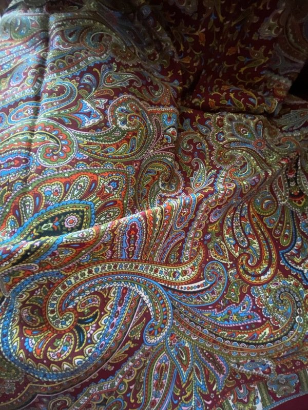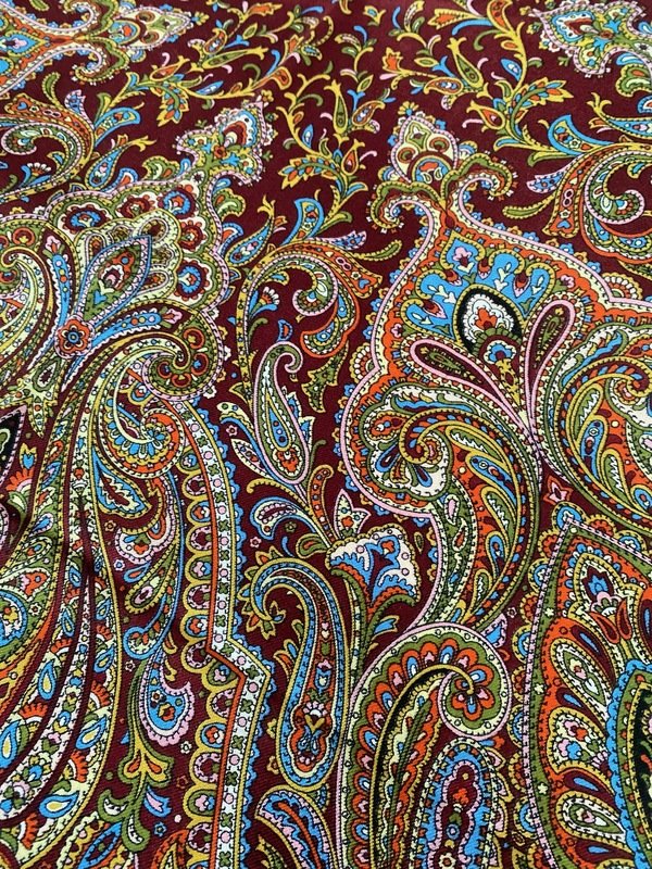 Покажу лоскут Колдовской ночи -16. Может это поможет при выборе. Скажу сразу, на фото резче и ярче. В реальности очень спокойные тона. Цвет каймы передан верно. Узор не темный.