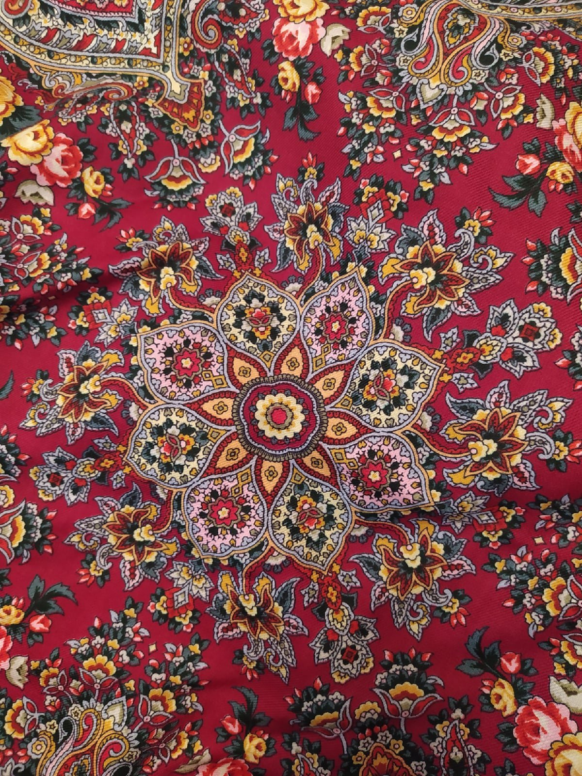 Единственное, что меня смущает, так это бутон розы в углу шали. Как -то чашелистики смотрятся в форме трезубца и выбиваются из общего рисунка. Но это, скорее всего, так получилось при восстановлении. Не думаю, что было задумано художником.