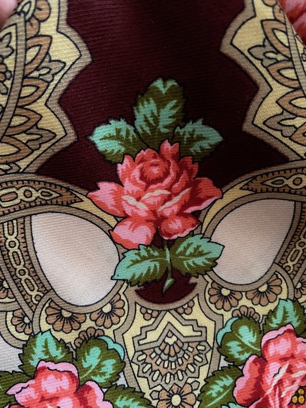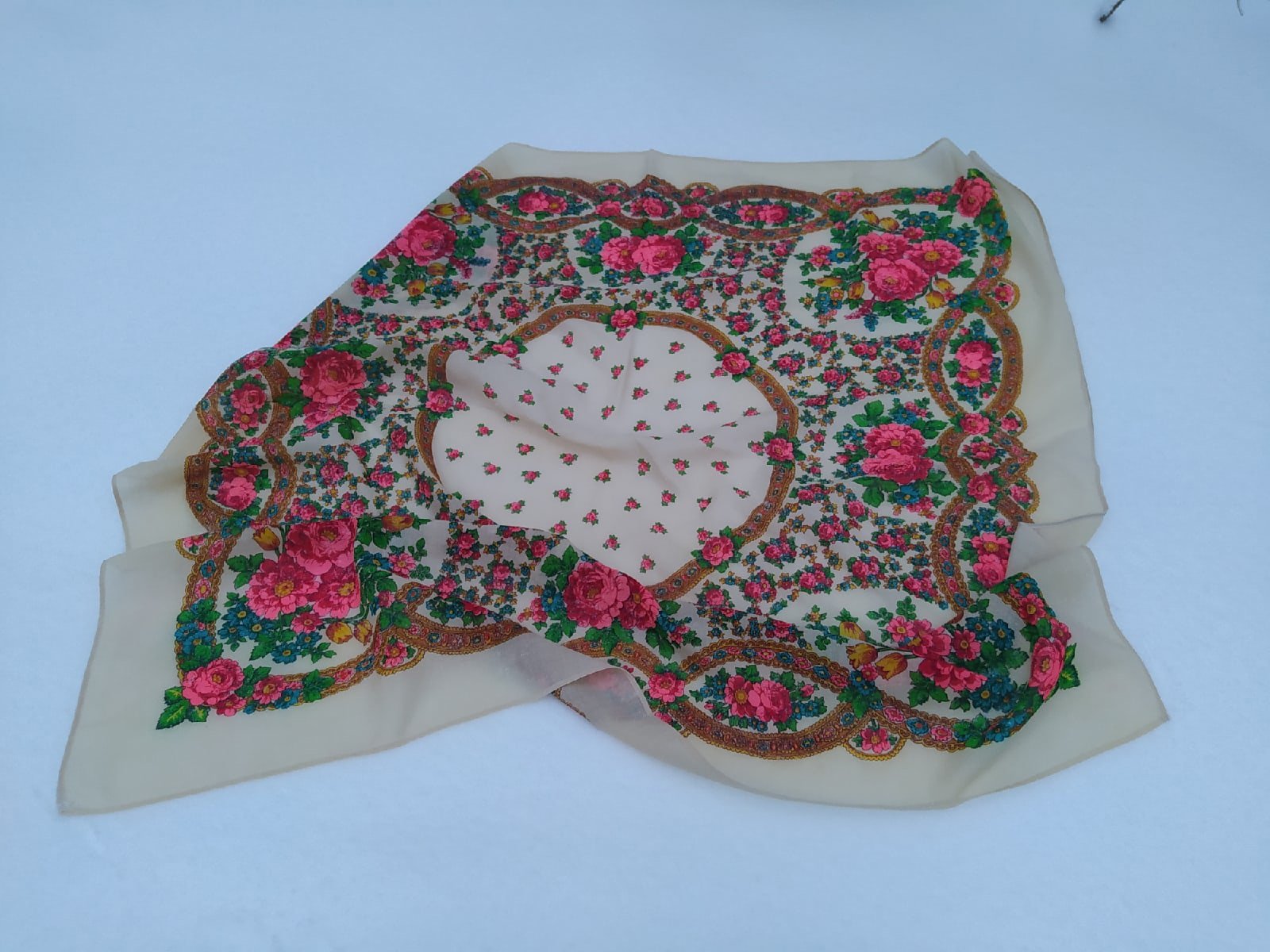 Фото при разном комнатном освещении. Свет дневной, обеденное время, пасмурно и сумрачно--за окном метель. Профф камеры дочери у меня сейчас нет, но цвета (на мою) переданы верно, НО...их очень сложно поймать, особенно цвет каймы.