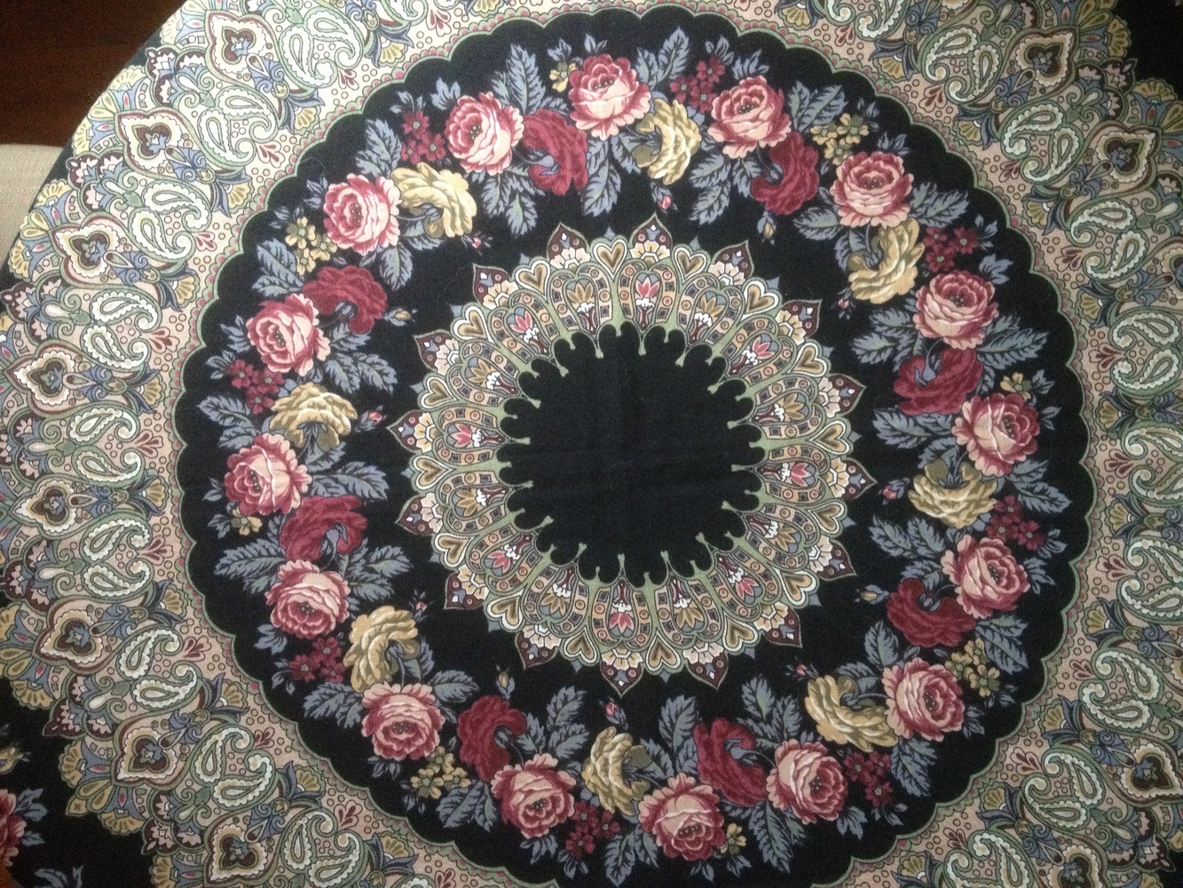Очень красивый платок Молитва. Все колориты хороши!Получила свою 15 с розовыми цветами. В восторге! Кайма совсем не фиолетовая. Нисколько. Очень хороший синий цвет. Даже не синий, а темно-синий. Рада очень.