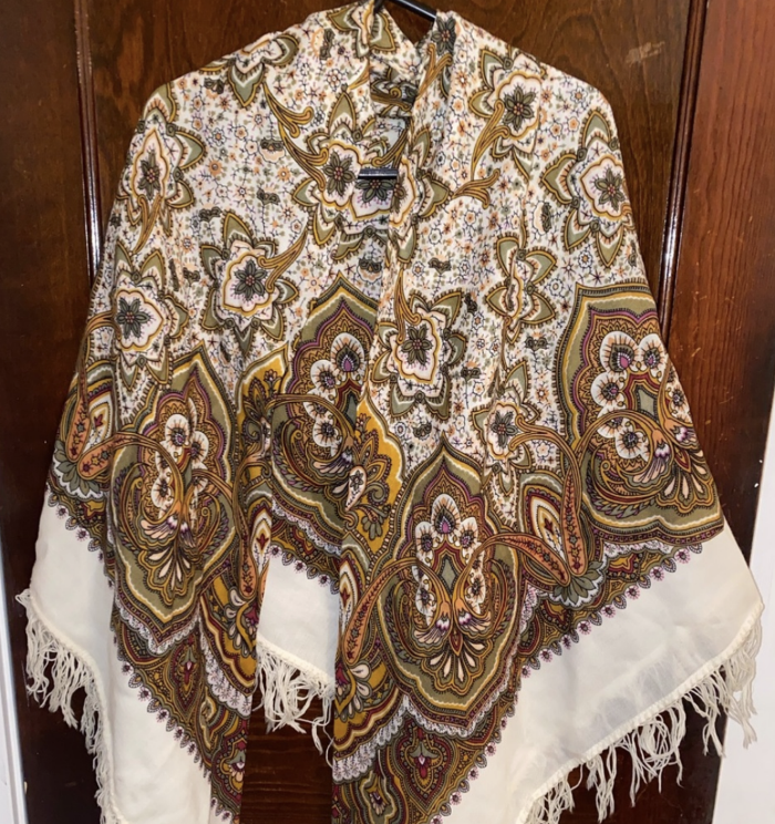 Доброе утро, Сударыни! Вчера и меня настиг Вернисаж. Купила в стандарте, безупречной печати. Долго не могла понять, почему уценка. Дома рассмотрела. Оказывается ужасного качества бахрома, сильно стянута на уголках. Было несколько шалей и у всех полотно без брака. Так что если кому-то не так важно какая бахрома, звоните, на Полянке были вчера экземпляры.