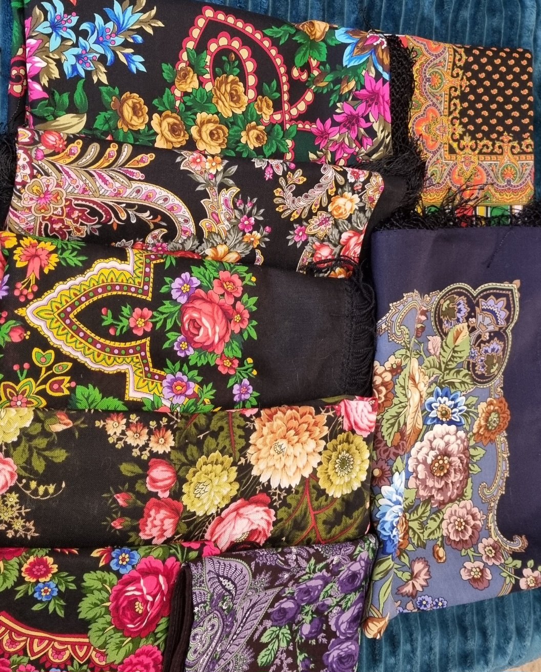 Нина Юдина, из того, что доступно к продаже из синих и голубых платков присмотрела:Душечку в голубом, звонкий ручеек, камаринская, признание и вдохновение- синие . ^%