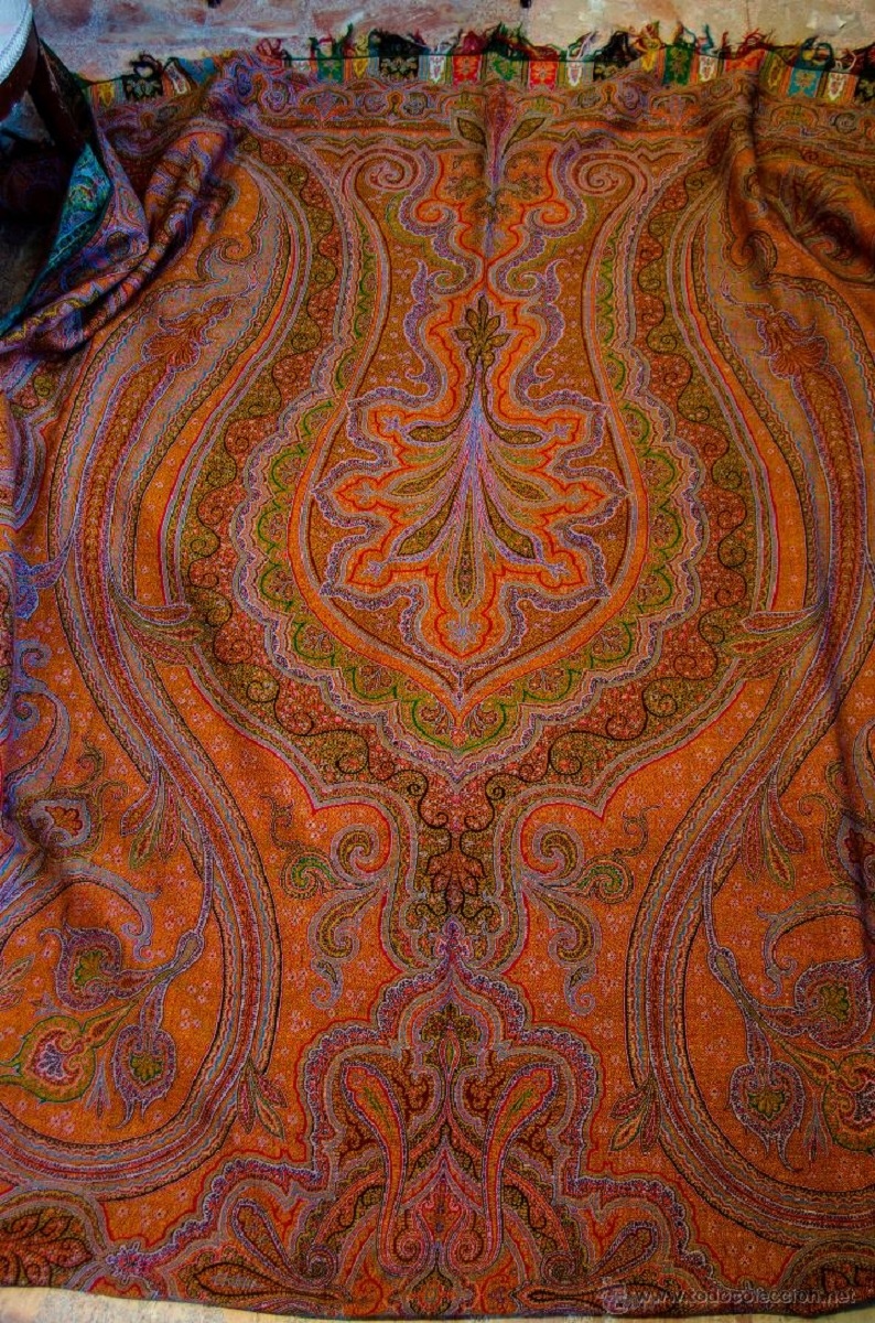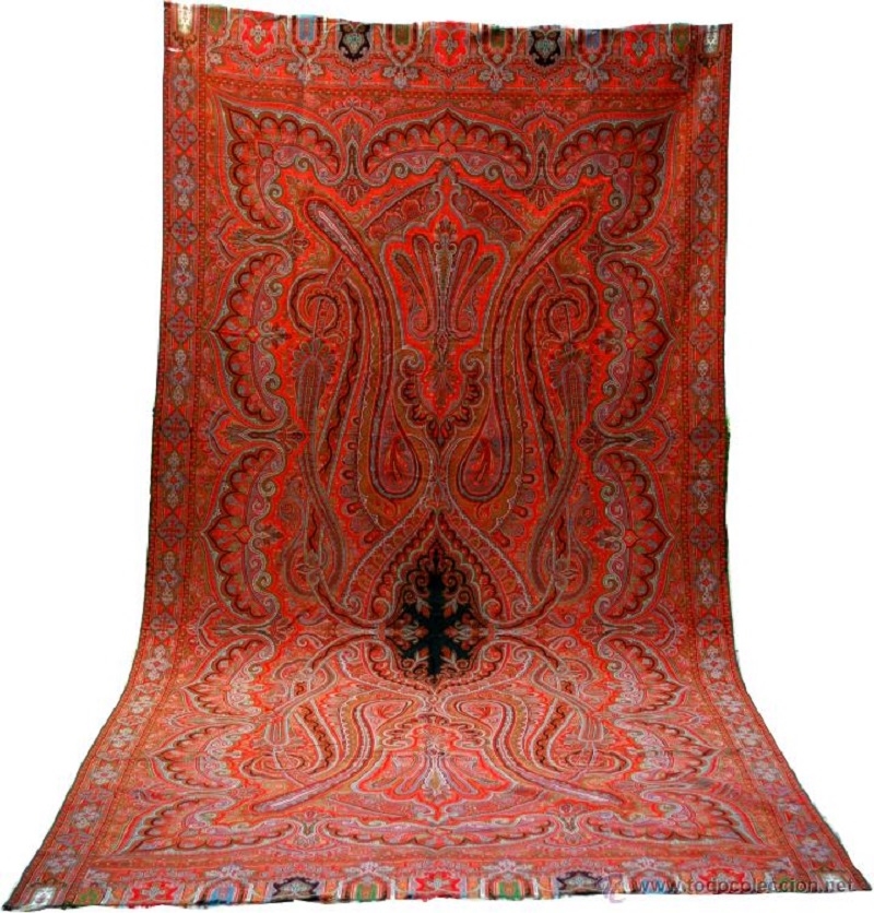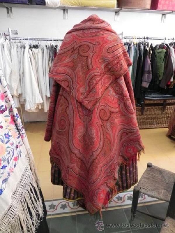 Эта кашемировая накидка из Леона первой половины XIX века привезена из Индии, пишут, что ручной работы, использовалась в качестве пальто, 320х160 см, 800 €