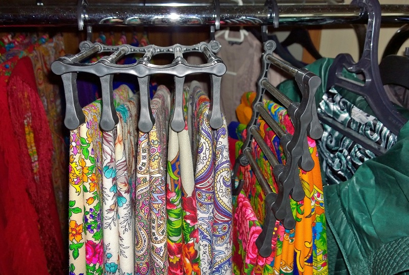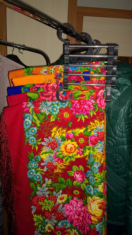 зимой планирую тащить так все на балкон, морозить коллекцию. как раз между платками есть расстояние, будет проникать воздух. и развешивать прямо на вешалке будет удобно, я думаю