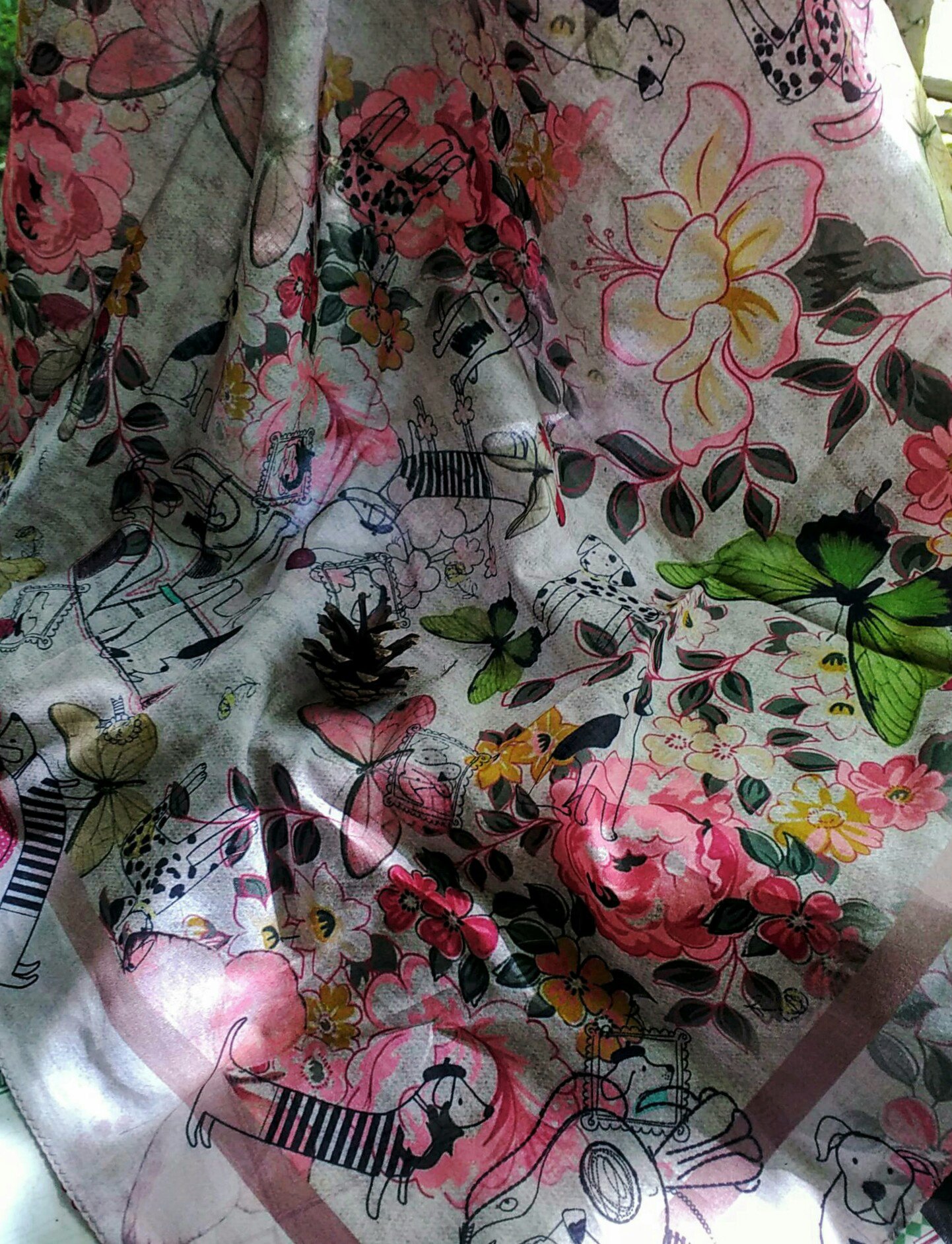Совершенно очаровал крепдешиновый платочек проекта Палитра «10142", вид 4, 89х89. Такой он летний, весь воздушно-цветочный, любовательный такой! Загляденье просто!