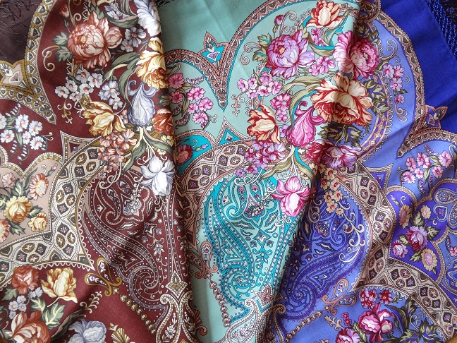 Добавлю фотографии, сделанные другим фотоаппаратом. Сравнила с "Княжескими". Логично было бы сделать сравнение с уплотнёнкой с зеленовато-бирюзовой каймой, но таких ВУ у меня нет. Ярко зелёный цвет в рисунке близок не к цвету бирюзы, а к цвету зелёнки (каким выкрашен музей И.Глазунова в Москве...). Ткань нежная, шелковистая (на этикетке артикул 1С148-1-ПН, сорт стандартный). Для фанатов "Княжеского", безусловно, подарок!