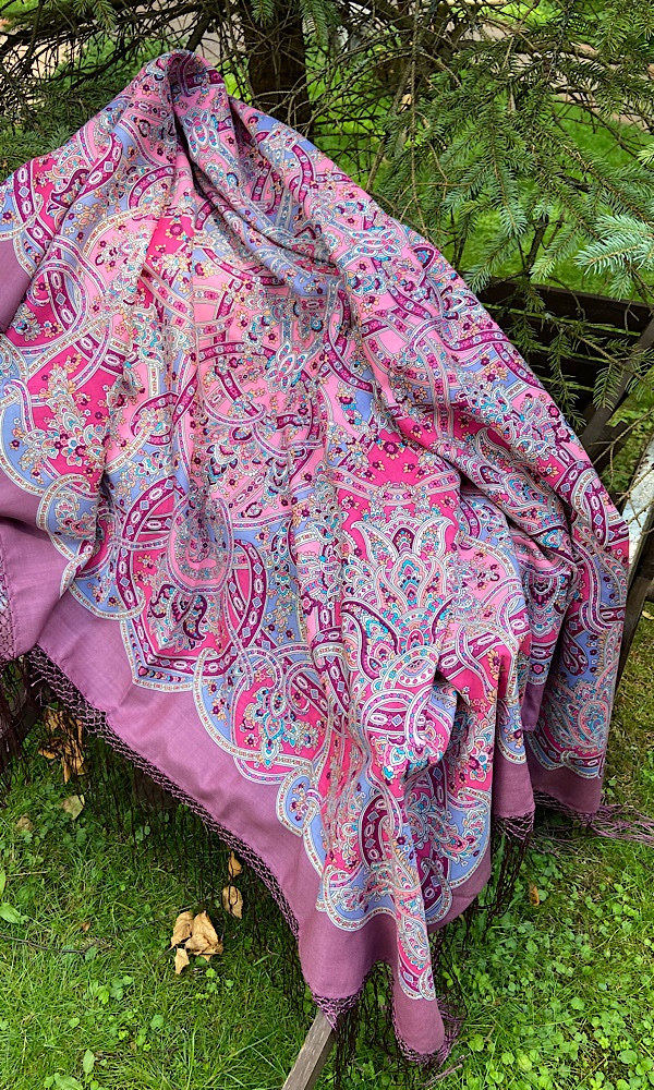 Общее впечатление - шаль радостная, красивая. Немножко пестрит, но я люблю такие.