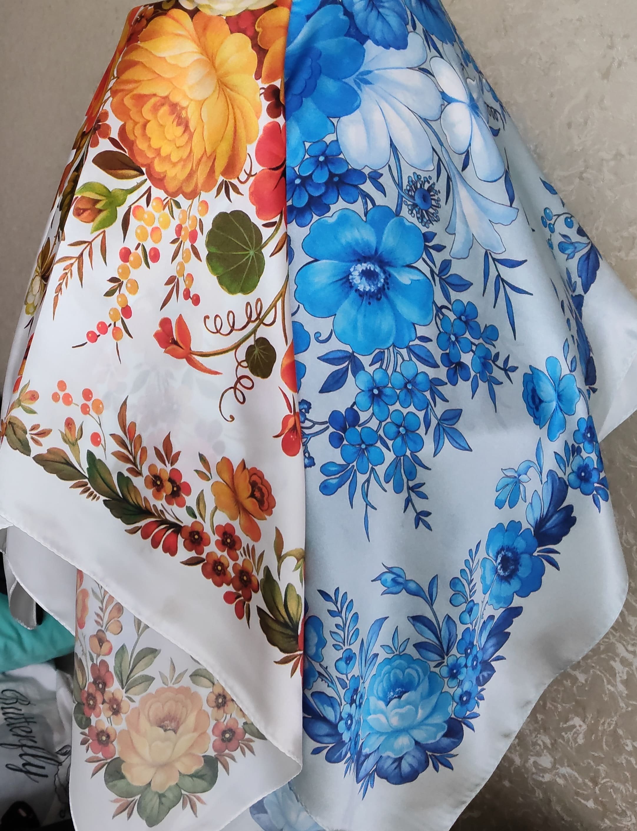 Сравнение семёрочек : "Переплетение судеб", вид 7, 135х135 см и "Сказочница", вид 7, 135х135 см .