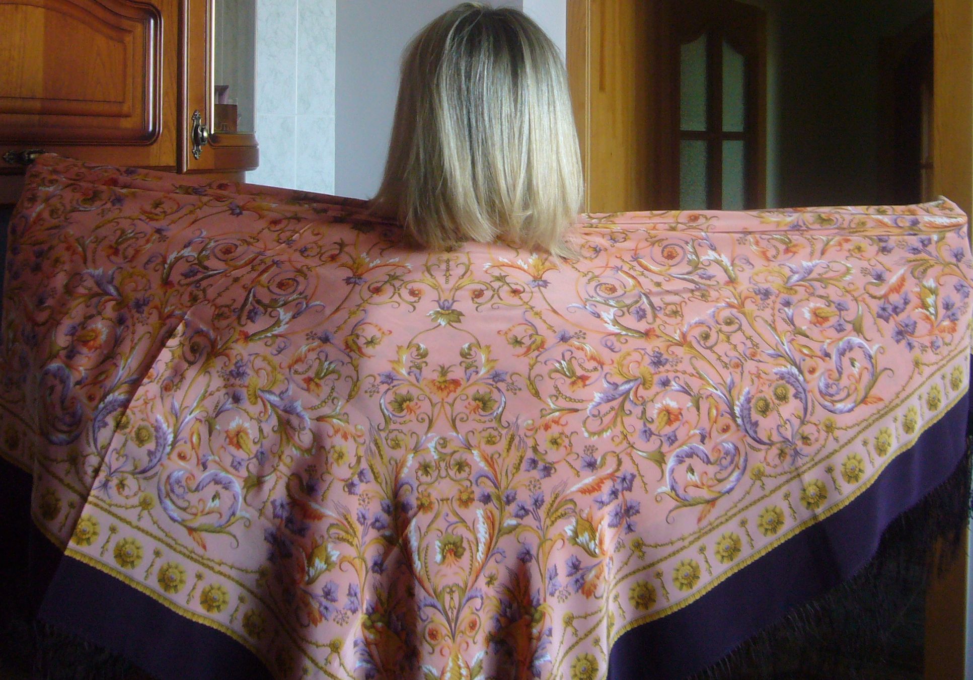 Получила посылку.Розово-желтая,шелковая "Песня ветра" выше всяких похвал,соответствует фото в каталоге и еще оказалась и к лицу.А вот шерстяные "Аленушка",1347-4 и "Отрада",678-4 принесли некоторые сомнения.Моя "Аленушка" совсем не такая нежная и весенняя,как показывали и писали Селена,Fisa ,Julia/S.Она темно-голубя,а серединка не белая,а с желта,скорее кремовая.Тоже и с "Отрадой"-она не белая,а с желтизной.Может они такими и должны быть,не видела белопольные платки в живую.Ответьте форумчанки :?,может я придираюсь.В любом случае, закончился мой отпуск по уходу,пойду выгуливать платки