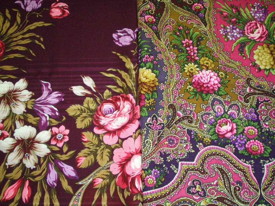 Более детально с "Павловскими розами". Как нам с Мариной показалось есть ощутимое "родство" основного цвета фона платка "Павловские розы" и "Осеннее танго" (здесь все фото со вспышкой - они придают желтизну листьям и "теплоту" розам. На самом деле - оттенок роз - холодный).