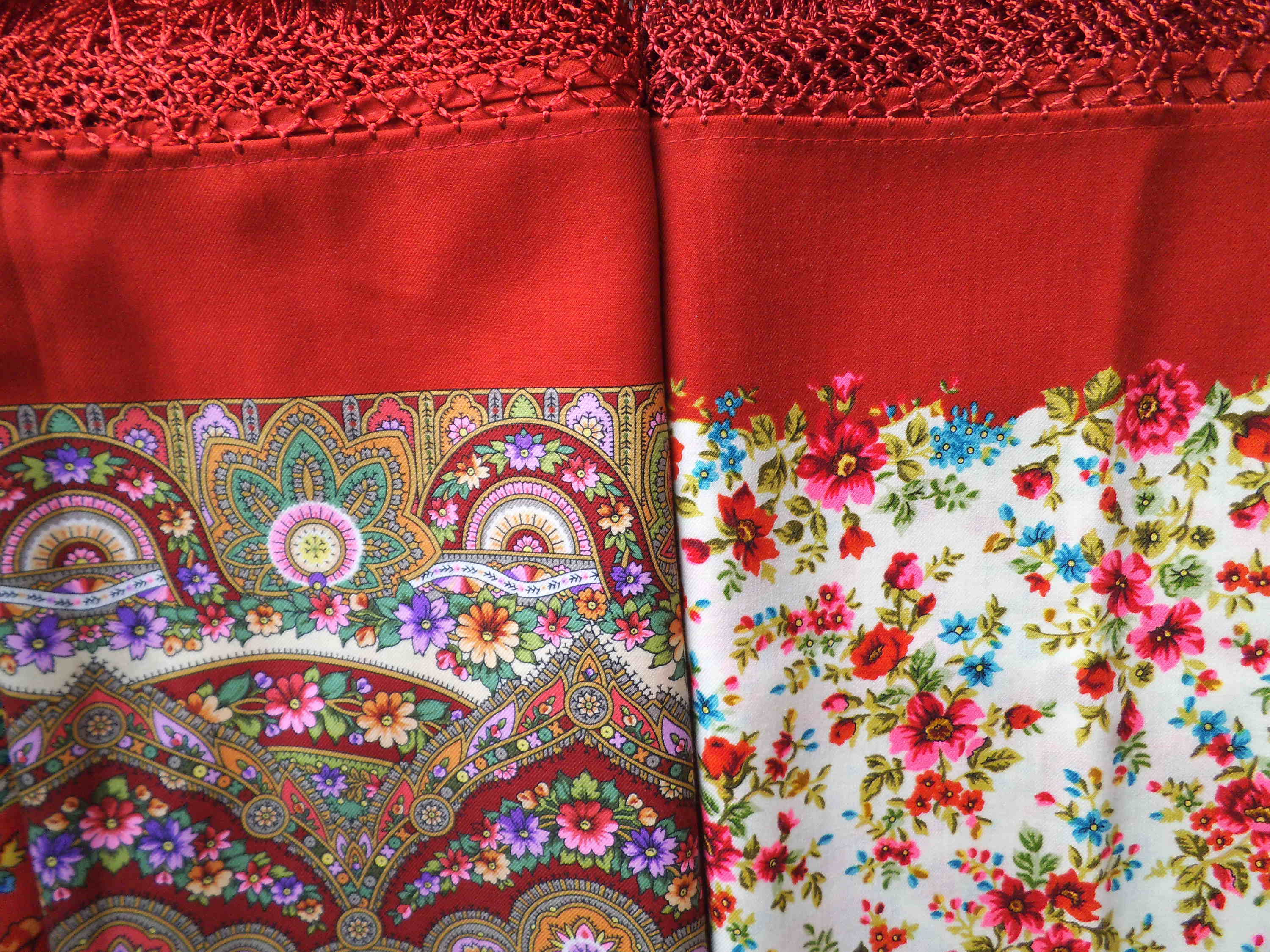 А вот кайма. У Рыжего лета-3, Ситцевого края-3 и Славянки-5 кайма идентична, а бахрома по цвету немного отличается,