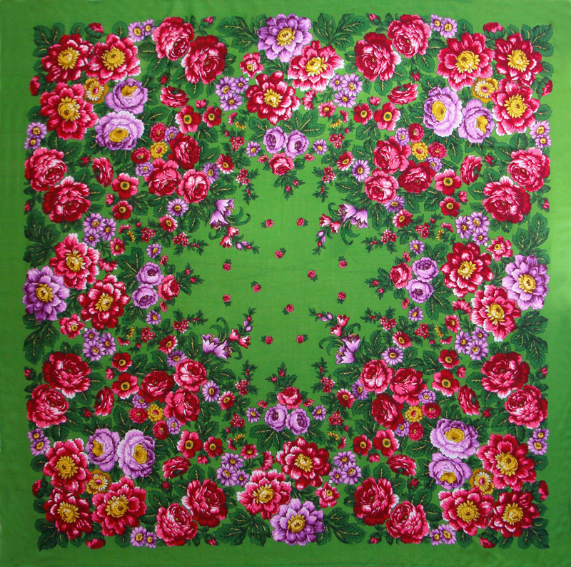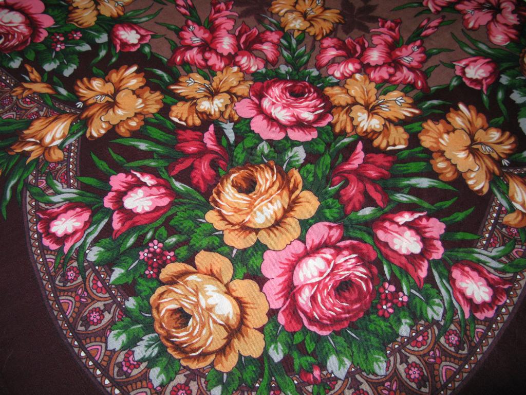А на почту я ходила за "Караваном" - о, сбылась девчачья мечта! Платок самый-самый красивый (читай - самый пёстрый!), и полувека не прошло, как приехал ко мне. Такие дикие сочетания цветов я рисовала на своих царевнах в детстве.