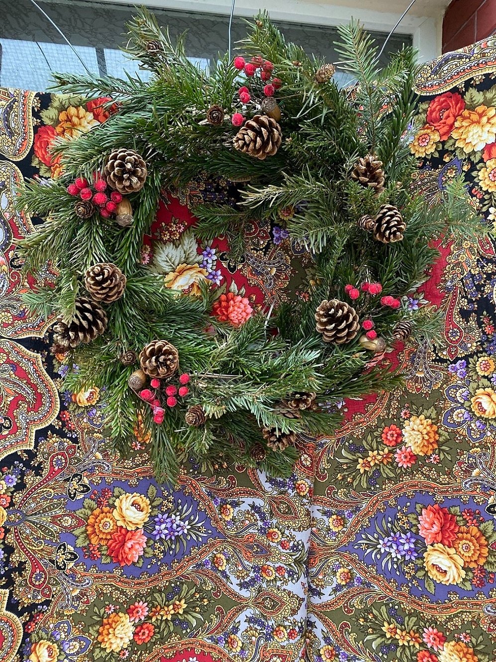 Добавлю в новогоднюю страницу результат нашего совместного рукоделия на скорую руку – рождественский венок из «лишних» веток от елки.