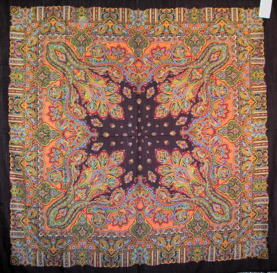 Вы совершенно правы! Этот платок только вблизи кажется сливающимся и избыточным. Издалека он смотрится очень гармонично - всё проявляется и отлично друг друга дополняет.argon писал(а): Спасибо! Вы как-то написали о "зажевывании" красным фоном цветов. Сейчас доступны колориты - красный, голубой и зеленый. И каждый что-то "жует". Мне кажется, это создает очень интересный эффект: издали и при ближнем рассмотрении рисунок шали видится по-разному. Он словно бы проявляется. А еще - это делает три этих колорита еще более непохожими друг на друга, поскольку акценты разные.