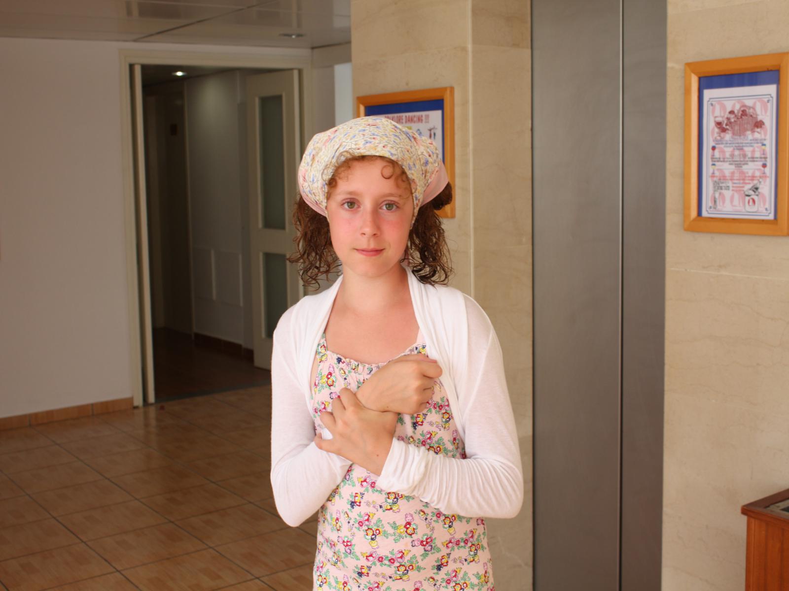 На Насте всё тот же розовый ТОПОЛИНЫЙ ПУХ, но смотрится платочек по-другому: А на Юле ВОСТОЧНЫЕ СЛАДОСТИ: А ещё на ней чуть-чуть заметен сарафан, сшитый из аналогичного лоскута. Постараюсь показать его поподробнее...