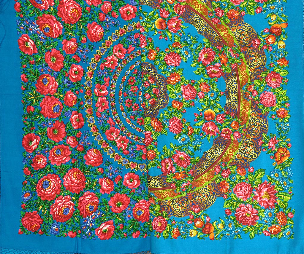В особенности сразил меня лазоревый "Русский узор" (Чеканка). Ведь верно чеканка, да еще на таком удивительном фоне! Спасибо Argon за показ шали во всех ипостасях - и на вешалке, и на себе.