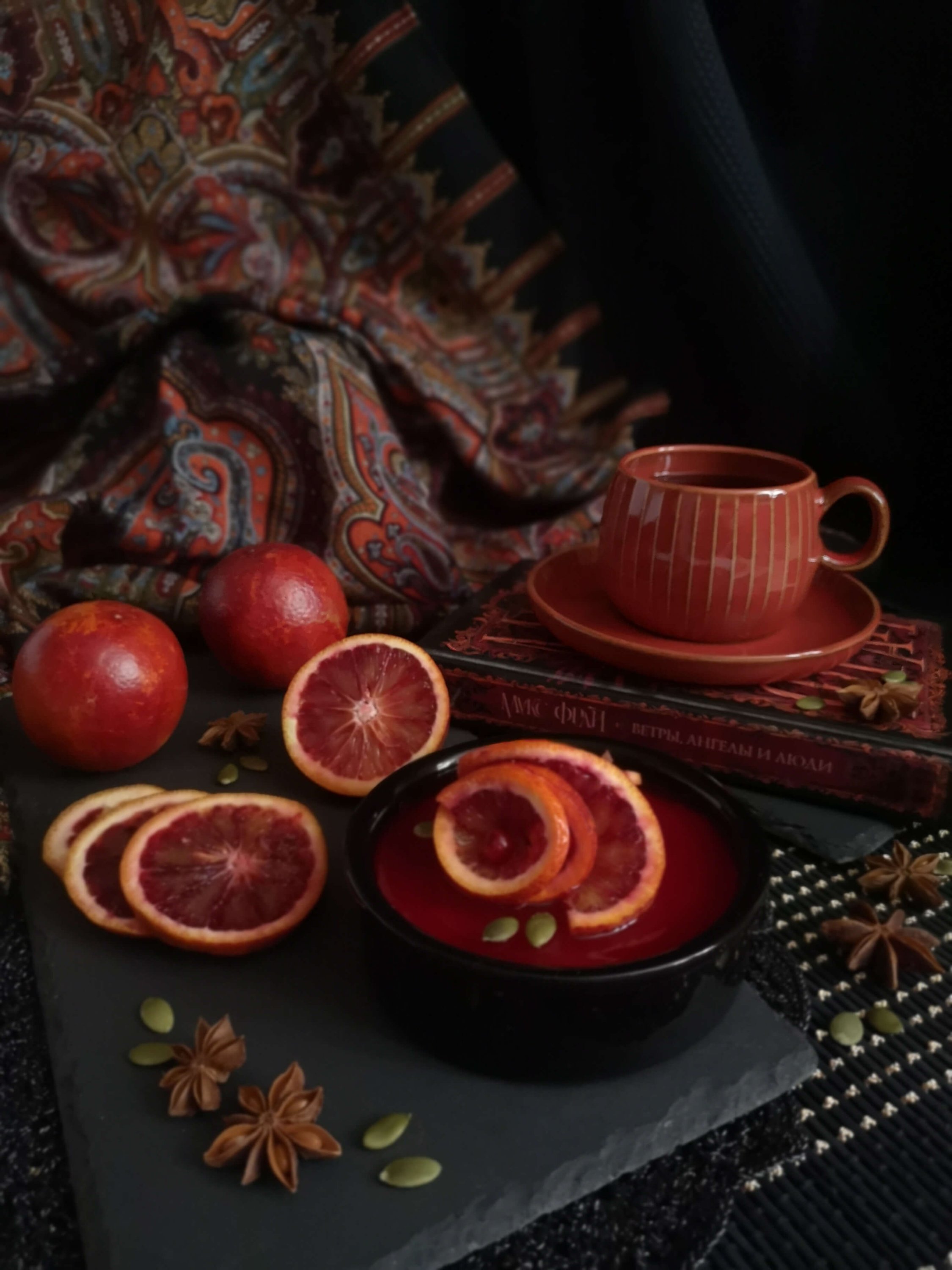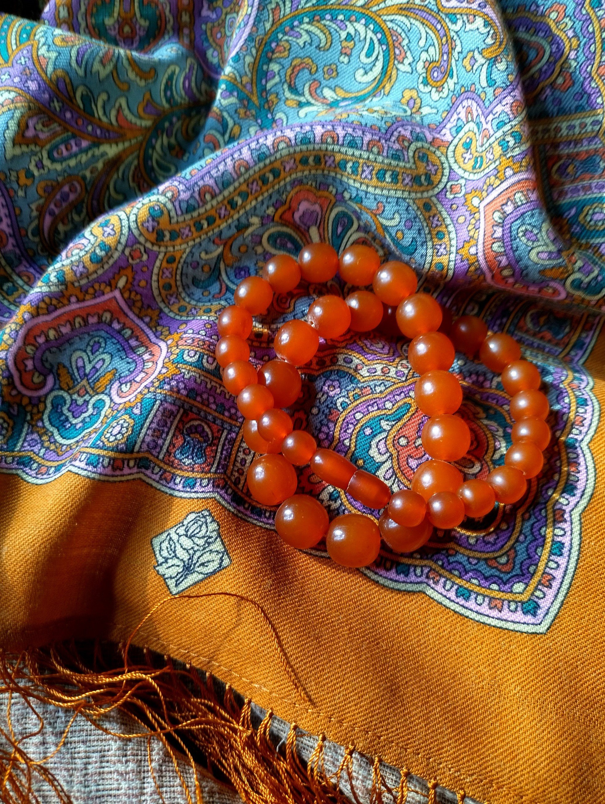 Тоже очень люблю этот платочек в 16 колорите. Красивые картинки с ним получились: и с вазой и подсвечником; и с бусами (сердолик?).