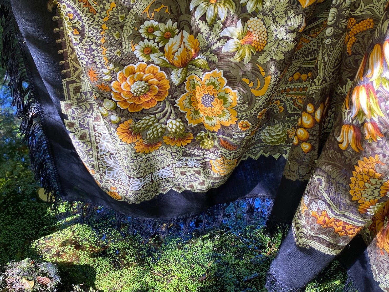 Нимфея, Ольга, спасибо за фото этого красавца. Очень понравилось как словами вы описали платок, особенно сравнение цвета роз ( спелый кабачок), сразу понятно как это выглядит.