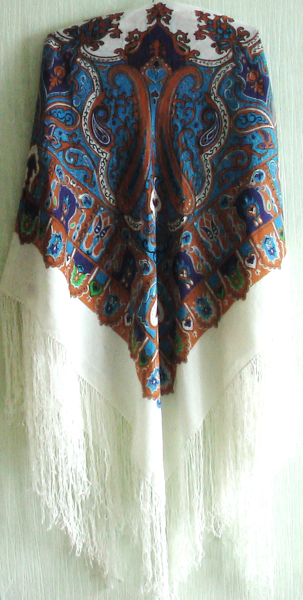 А Ваша шаль шерстяная или х/б? Я вот тут viewtopic.php?f=3&t=799&start=0#p14987 показывала хлопковую такую же. Очень красивый рисунок! Жаль, что никто не может ничего сказать про эти шали. А их изготавливали в 70-80-х годах довольно много.Mlava писал(а):Сударыни! Прошу ответить, кто знает, что за платок? ему лет 25, бахрома вязаная...не размахрилась, за эти годы, правда в носке не был. Одевался дома для тепла, и то изредка. Последнее время накрывал телевизор в квартире хозяйкиЛучше сфотографировать не получается, в наличии только телефон