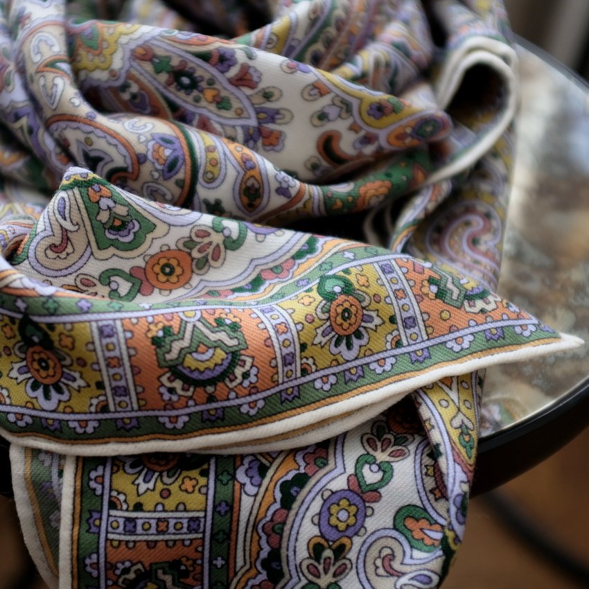 Спасибо. Да, мне так и хотелось, что бы платок заканчивался цветной каймой. В маленьком размере платка однотонная кайма мне очень мешает, потому что в скрутке только она и видна.
