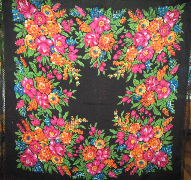 Буквально на днях шла с работы, а передо мной шла женщина в таком платке поверх шубы. Я как издалеке цветы яркие увидела - догнала, чтобы идти поближе, и всю дорогу разглядывала цветы на платке. А издалека они смотрелись как-будто объёмные - очень красиво.Синяя Птица писал(а):А у меня сегодня вот какая находка: