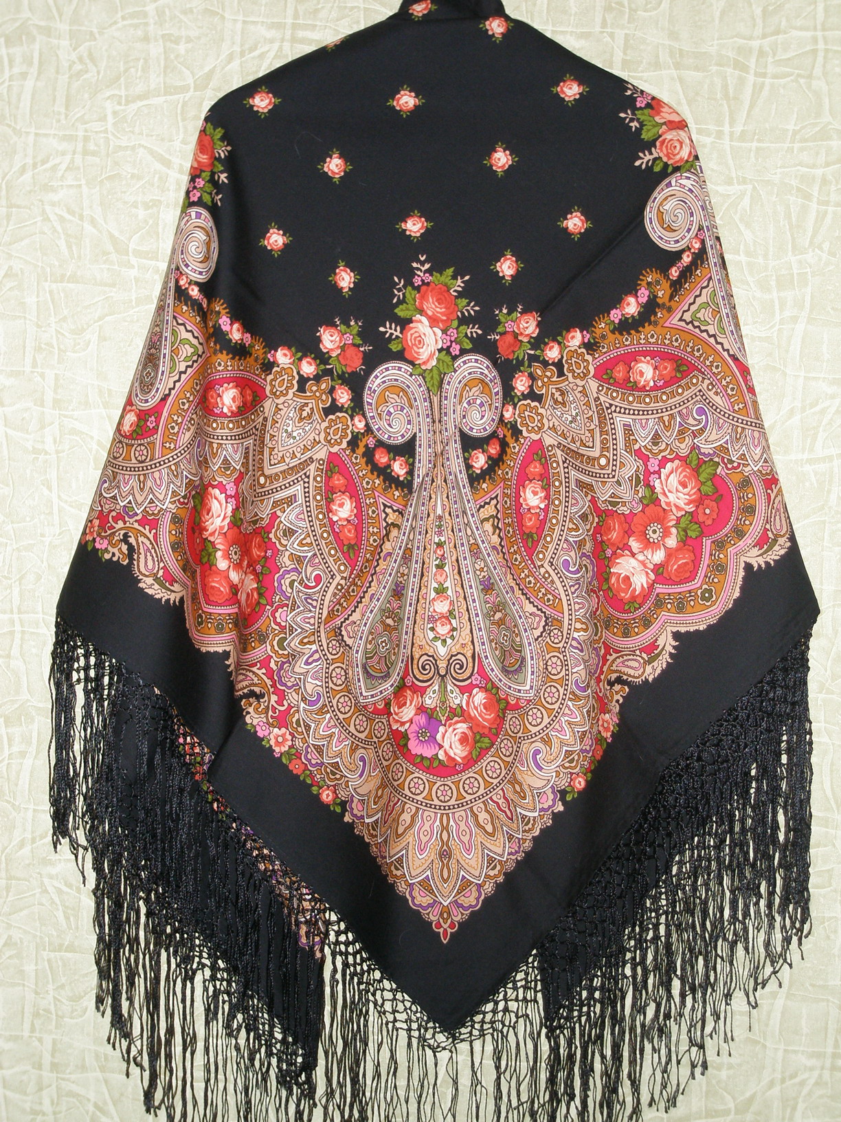 Ехала я вчера в трамвае и всю дорогу на женщине платок рассматривала. Так увлеклась узором что чуть не проехала остановку. И сегодня узнала что рисунок этот называется "Восточные напевы", автор Клара Зиновьева. Может знаком кому-нибуть, подскажите артикул? Кайма чёрная.