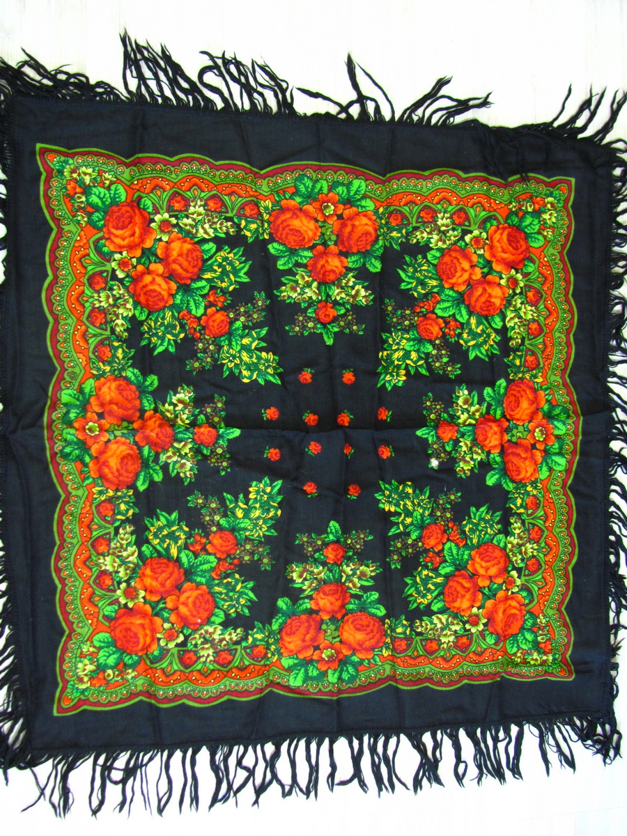 Ларисочка, платок моей тетушки точно шерстяной. Наводнили тогда наш рынок платки из Японии, на форуме много о них писали. Они были тоже чистошерстяные, тоненькие. Размер их был 132х132, их порой на Молотке продают. У мамы был такой синий, тоже орнаментальный, но он совсем другой, сильно отличается от тетушкиного.