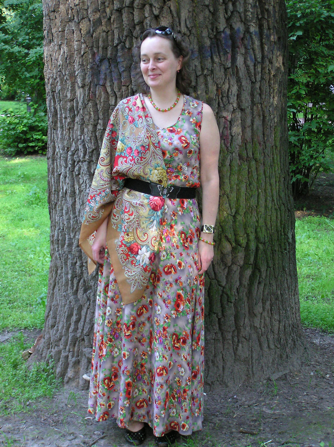 Да, платье красочное, но ему без аксессуаров, на мой взгляд, яркости не хватает.