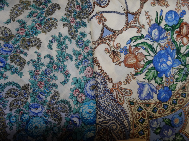 Решила сравнить маленькие (89х89) синенькие (вдруг кому-то пригодится в выборе): Татьяна 1564-3 и День рождения 789-3. Они разные, конечно. Татьяна более яркая, присутствует розово-малиновый, темно-голубой. День рождения сдержанный, спокойный. Темно-синий, лилово-фиолетовый, бирюза, беж. Рисунок плотный, закрученный, кружевной. Более холодный.