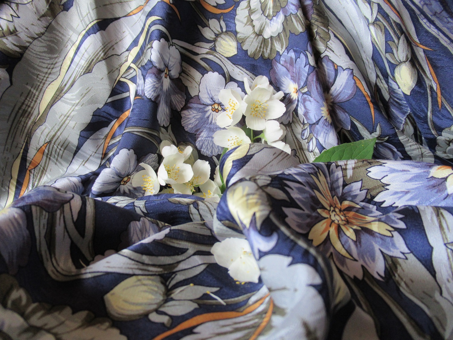 Moon River, очень красиво ::P ! И платок, и вазочка (?), и чубушник (у нас тоже все его жасмином называют).
