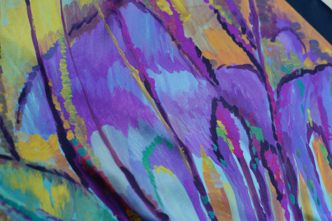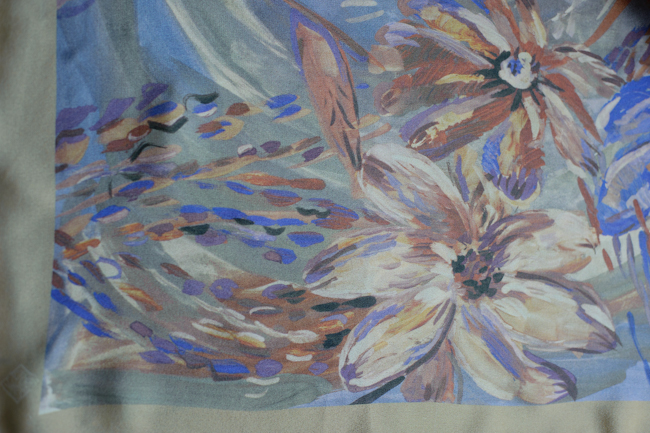 Мне этот платок по качеству нравится, единственная у меня к нему претензия - черные стебельки кукушкиных слёзок на синем фоне плохо видны.