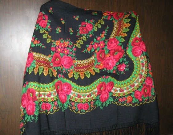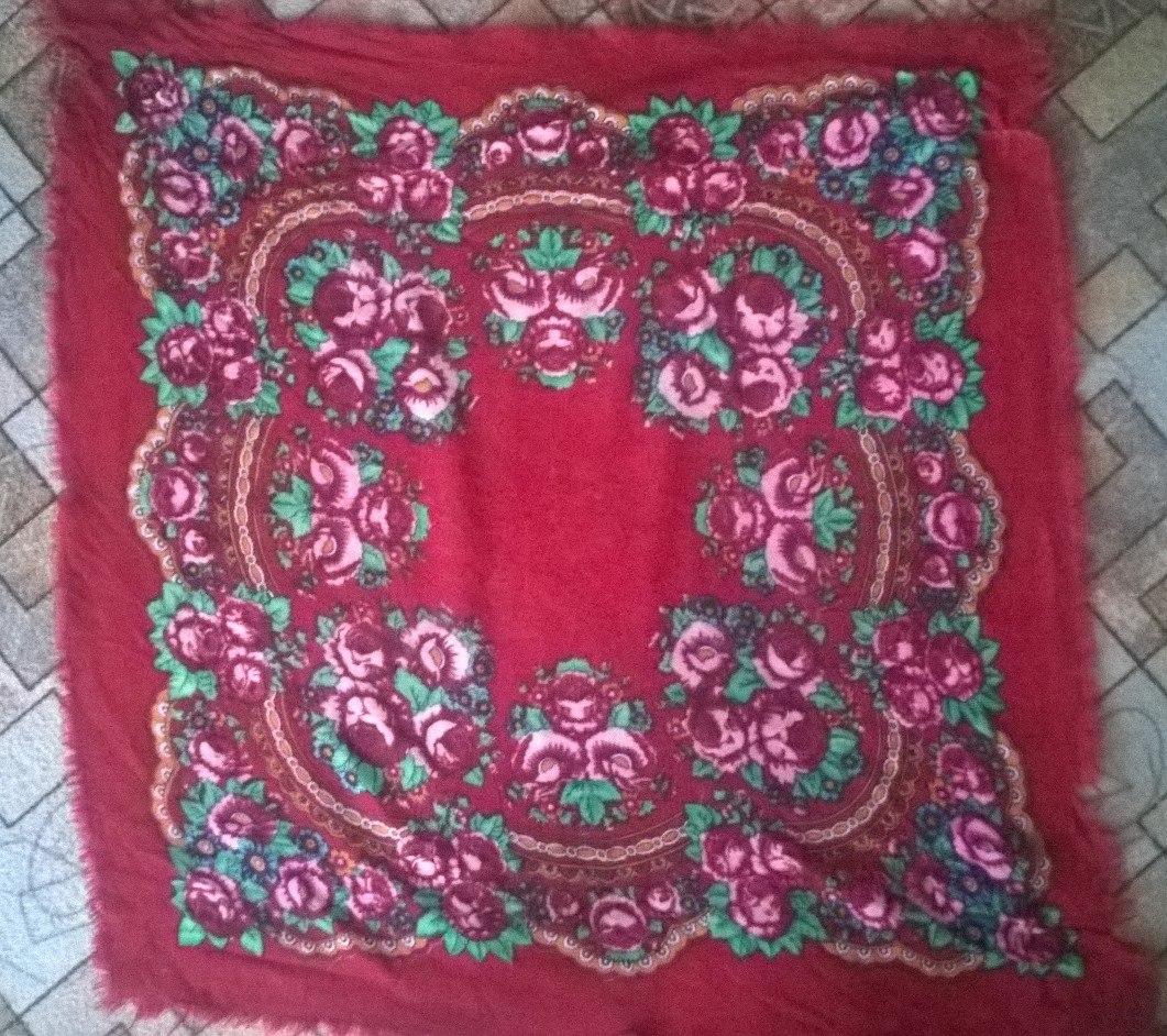 Этот может и не павлово-посадским быть. У меня есть старый маленький платок с очень похожим узором, с этикеткой "Московская экспериментальная фабрика ВНИИ.. (чего-то там)". Но был похожий узор и у павлово-посадского платка, насколько мне известно.