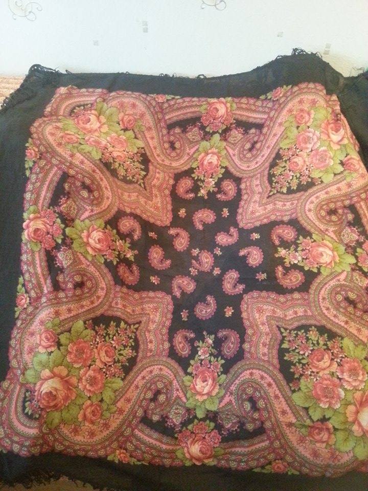 Здравствуйте, девушки! Я новенькая на этой чУдной площадке, и сразу с просьбой помочь найти имя платку. Принесла подруга, со слов, ему лет десять. 146*146, была черная шерстяная бахрома, которую я сняла, без нее платок смотрится выигрышней, по крайней мере, по моим ощущениям. Сори за фото, плохое освещение и на телефон, могу перефотографировать, если нужно. По факту расцветка всё же в более болотных тонах. Буду очень благодарна за помощь.