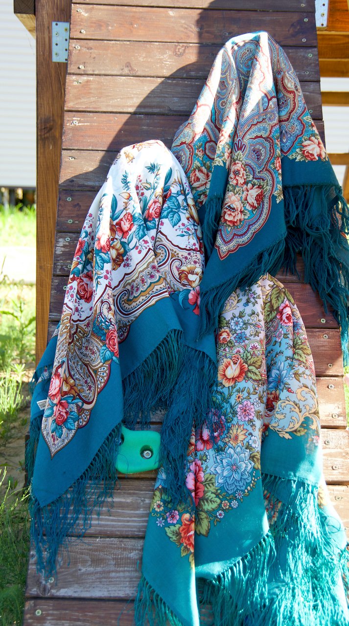 Новые бирюзовые в моей коллекции- шаль Времена года.Весна и платок Троицыно утро, оба-вид 11.