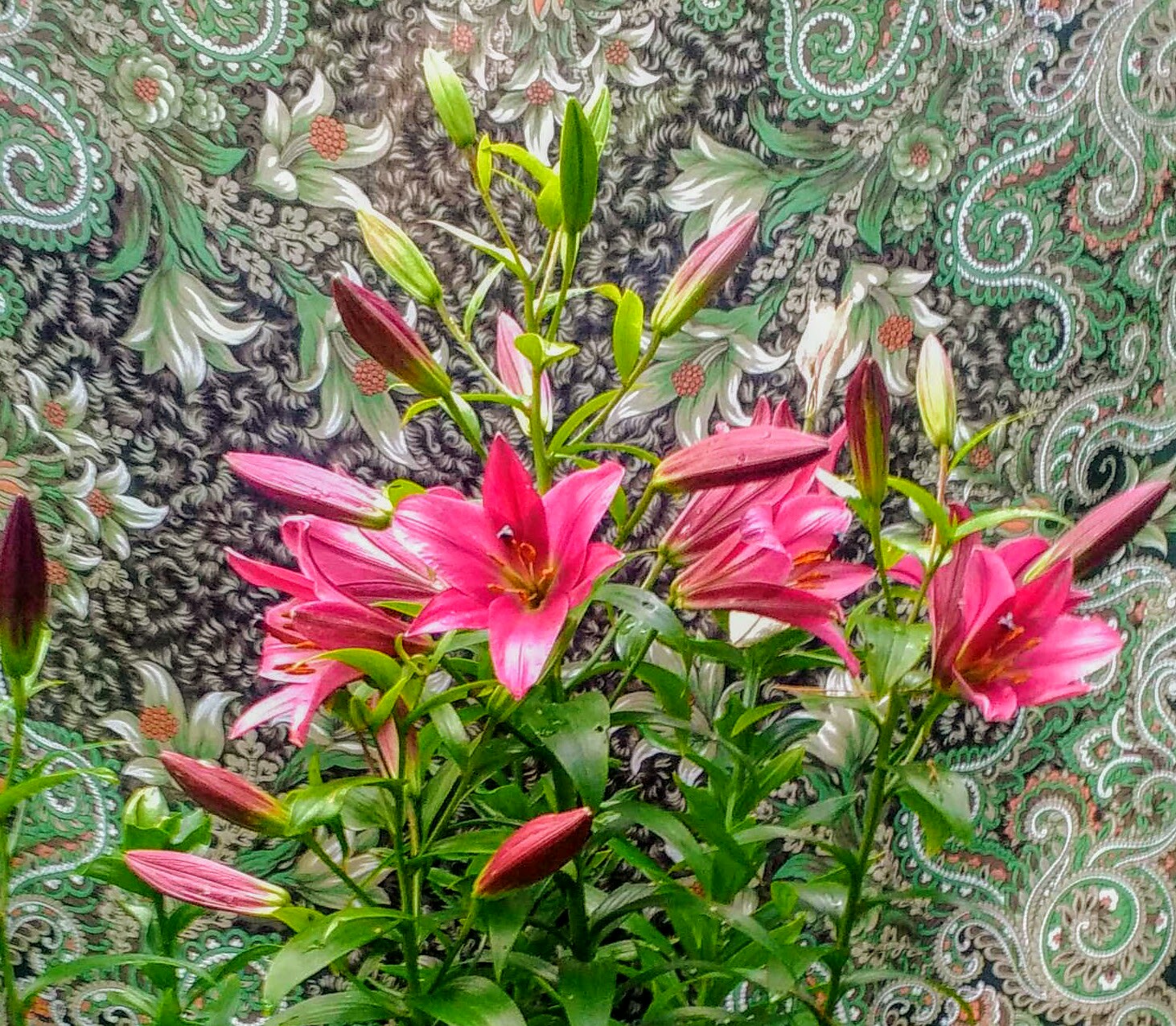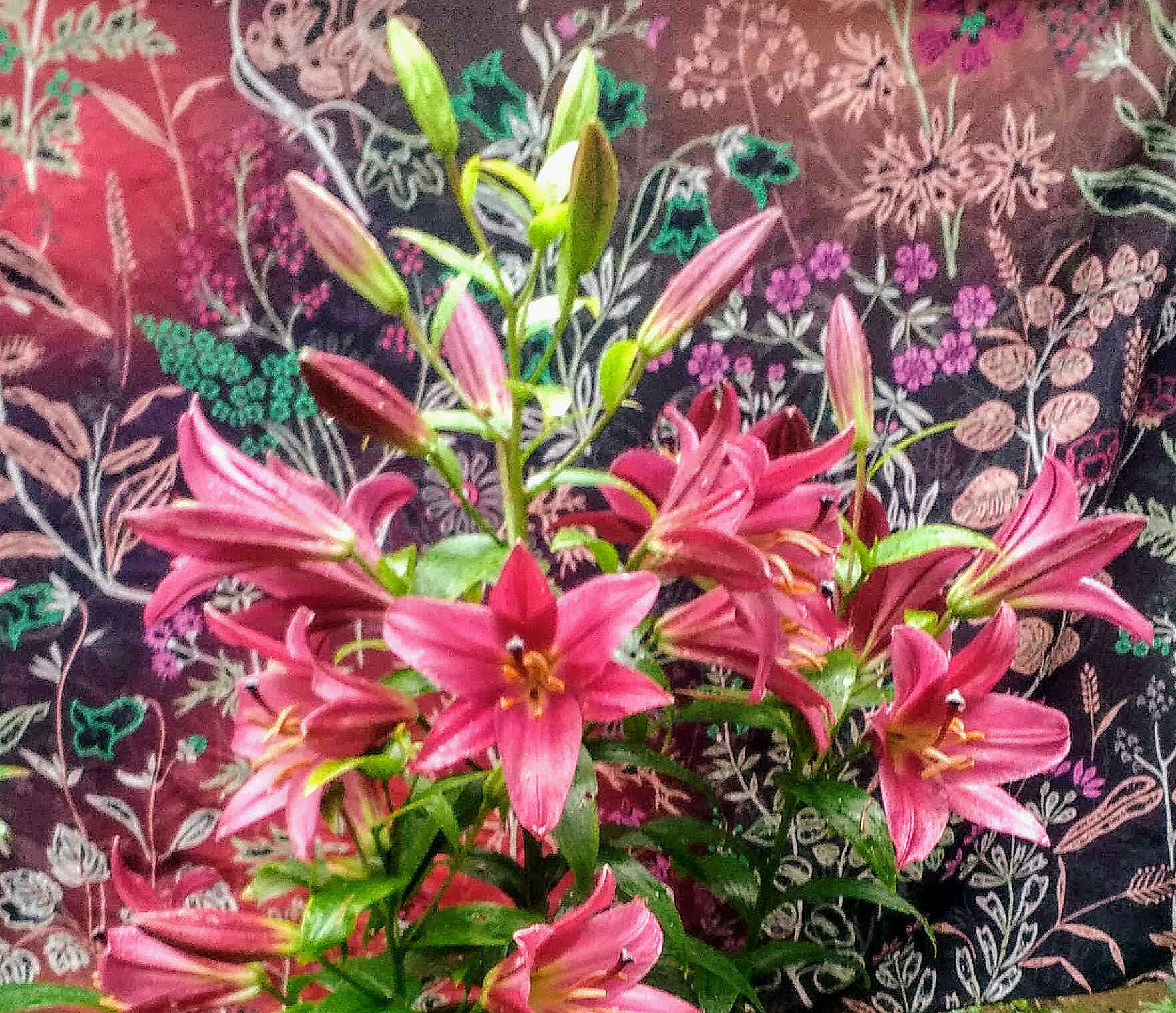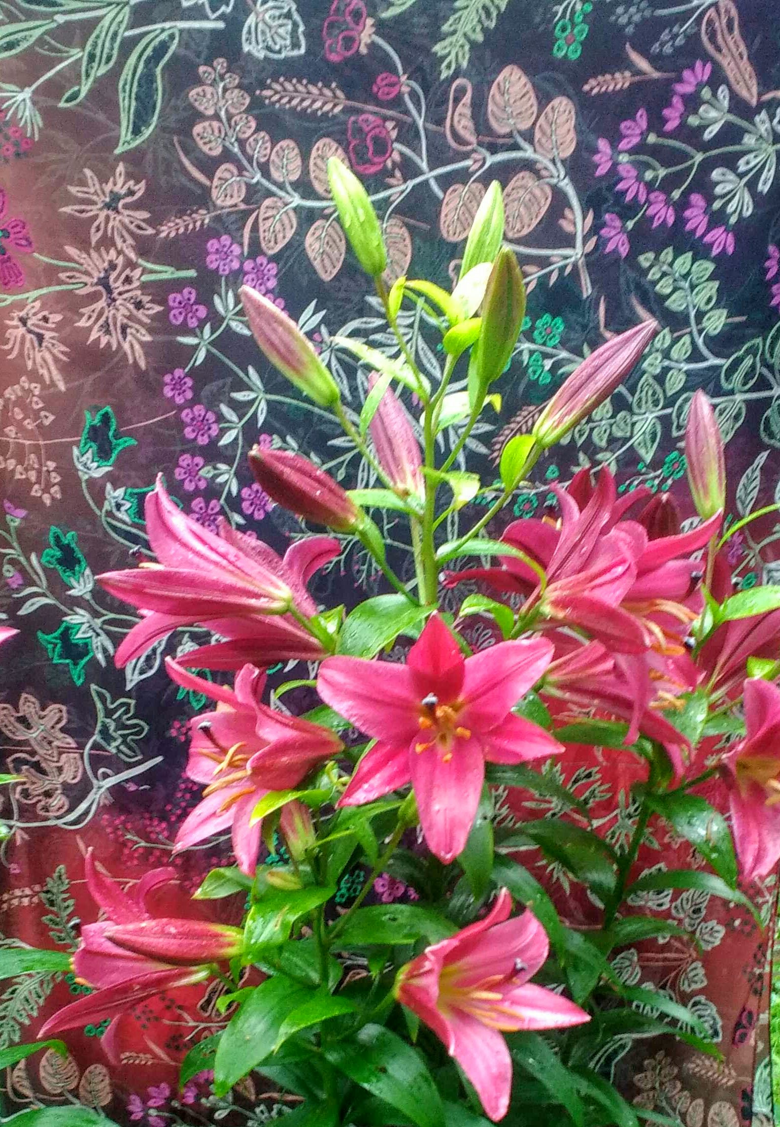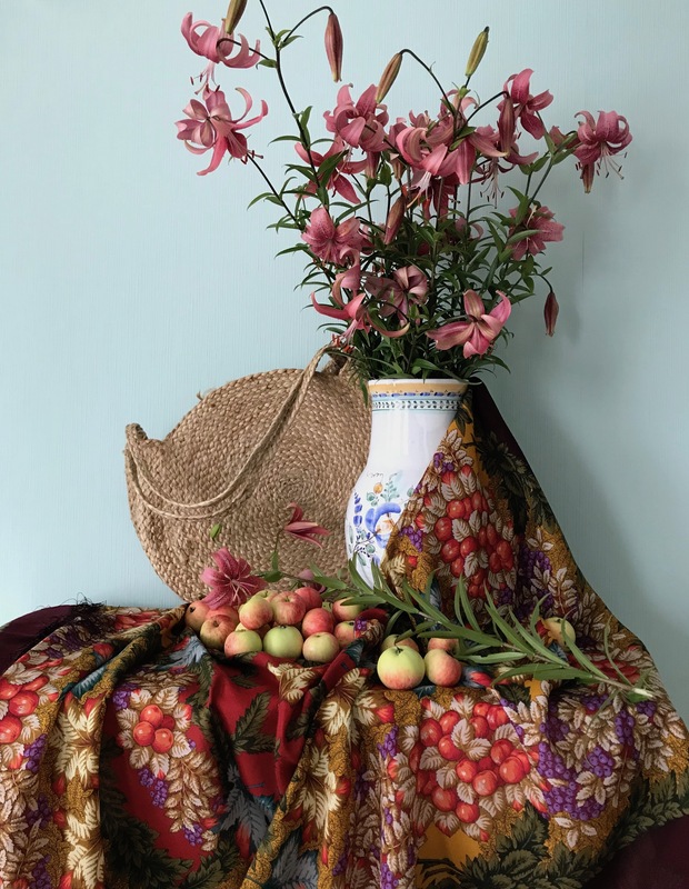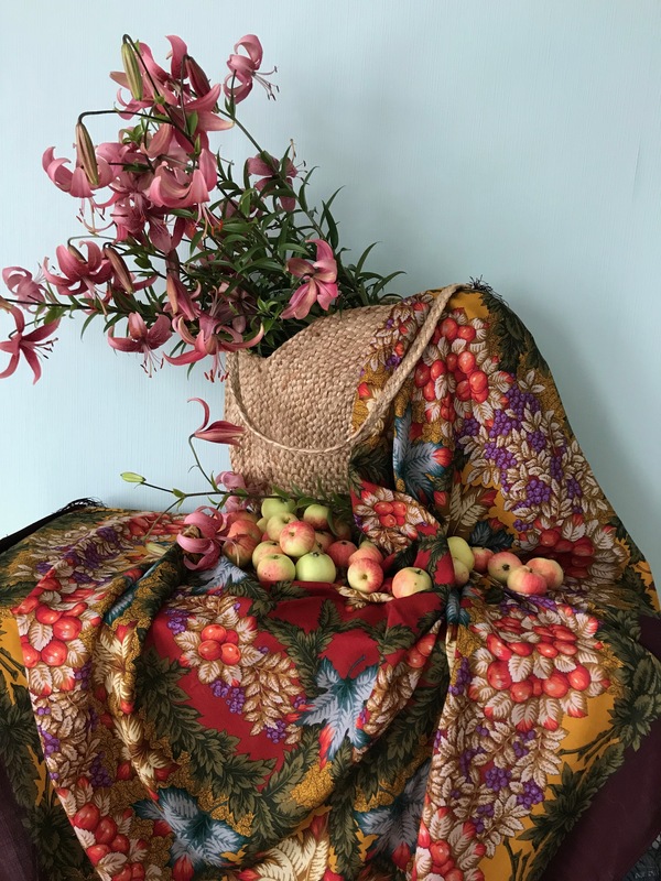 Настроение не июльское, но лилии расцвели, это радует. На фото на втором плане - палантин И. Макаганчук 10807 и платок 125 см Морозко (название почти соответствует нашему июлю). Лето, вернись, пожалуйста!