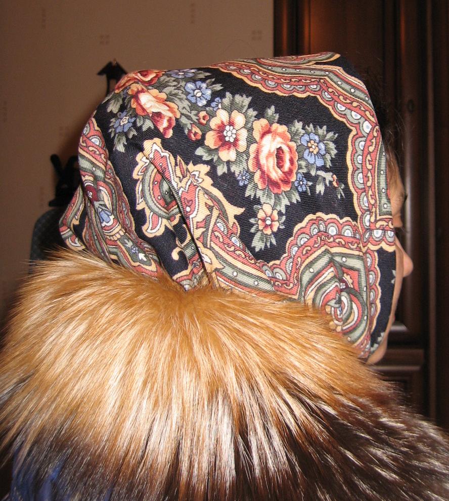 Это Ария 711-14 Ирины Дадоновой. Порадуйтесь со мной. Все платки я пробую одеть на голову. И вид сзади